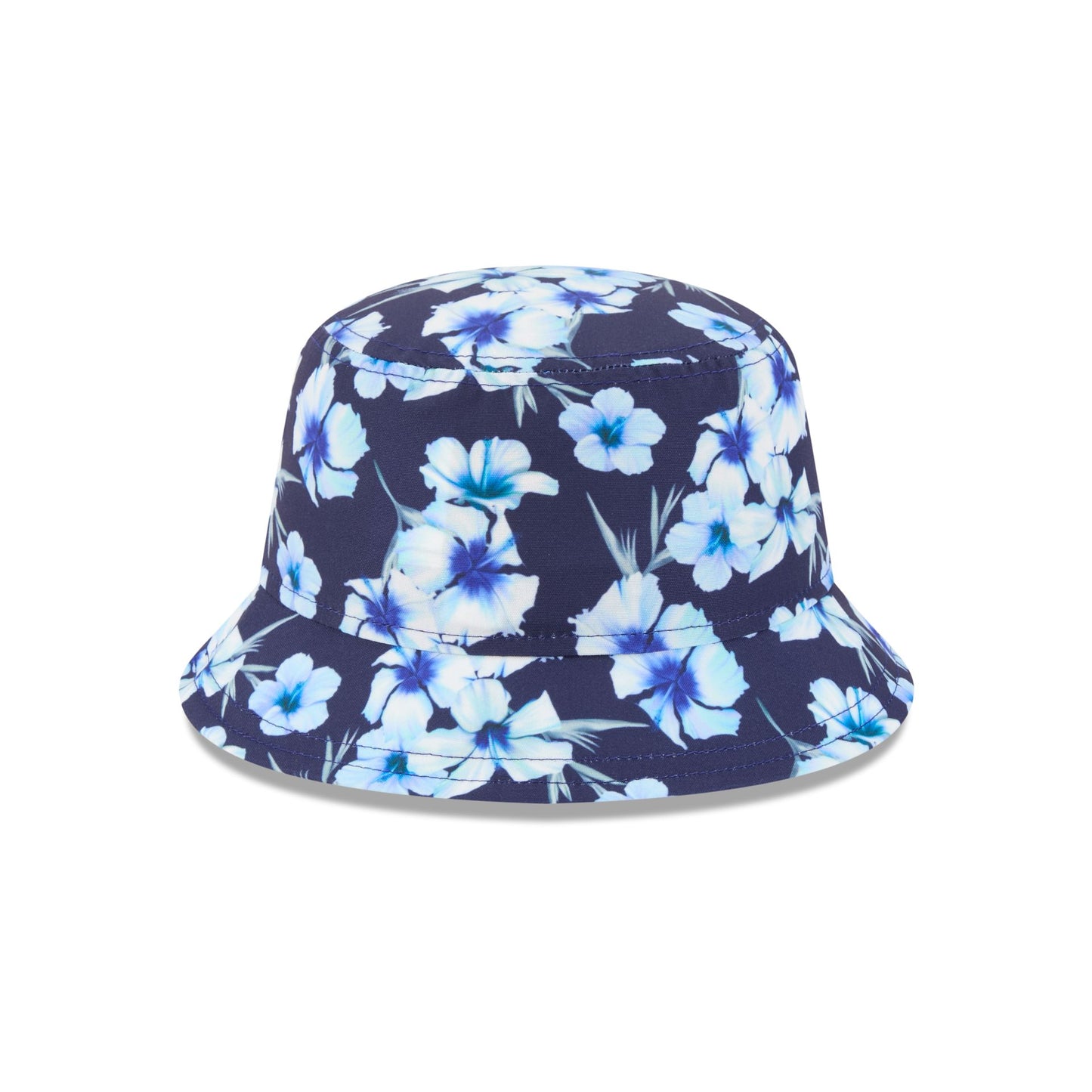 The Los Angeles Dodgers Pattern Bucket Hat features an allover floral pattern with an embroidered Dodgers logo at the front panels.