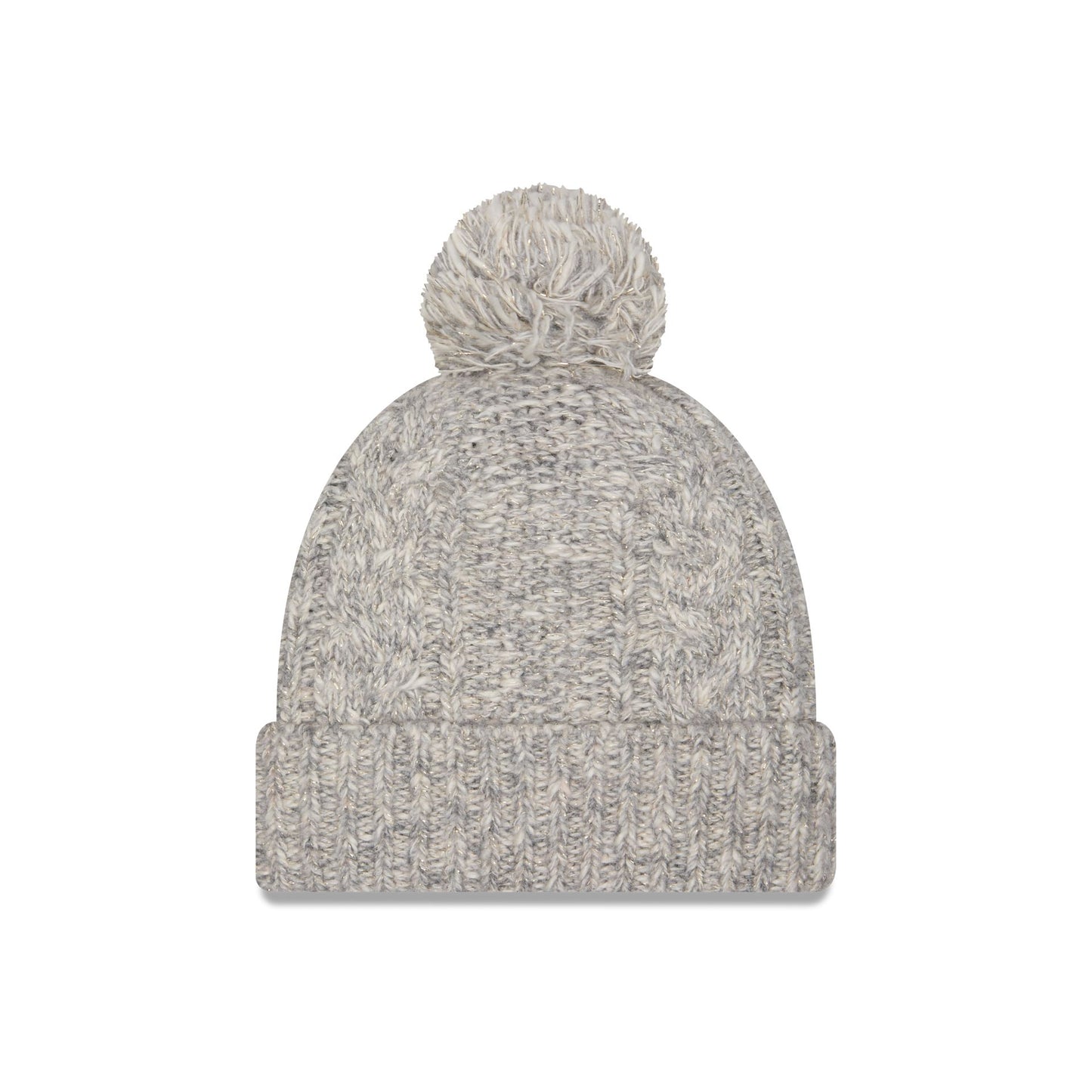 The Los Angeles Dodgers Shimmer Pom Knit features an embroidered Dodgers logo at the front cuff with a cable knit stitch throughout.