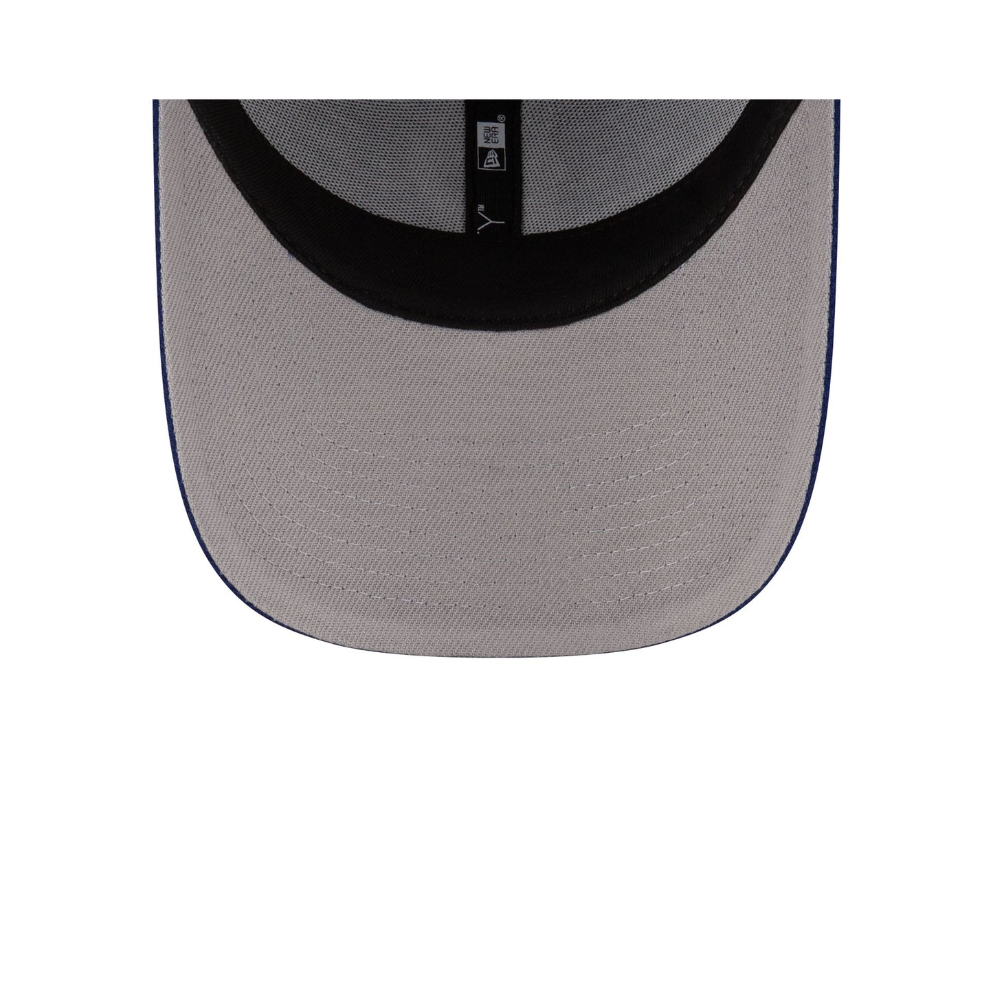 The Los Angeles Dodgers Shohei Ohtani 9FORTY Adjustable Cap features the player's name and number with a Dodgers logo embroidered at the front panels, a gray undervisor, and an adjustable hook and loop strap at the rear.