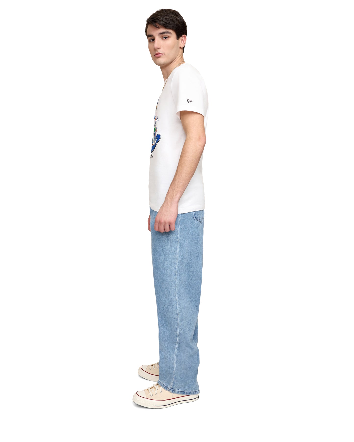 The Los Angeles Dodgers Shohei Ohtani White T-Shirt features a screen-printed Dodgers Shohei Ohtani pitching graphic at the front.