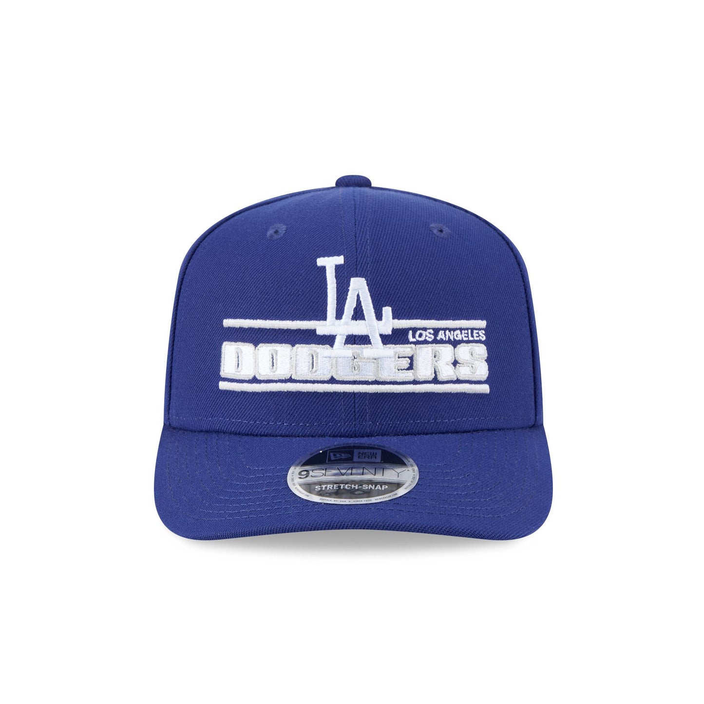 The Los Angeles Dodgers Stated 9SEVENTY Stretch-Snap features an embroidered Dodgers graphic a the front panels with an adjustable stretch-snap closure at the rear and a gray undervisor.