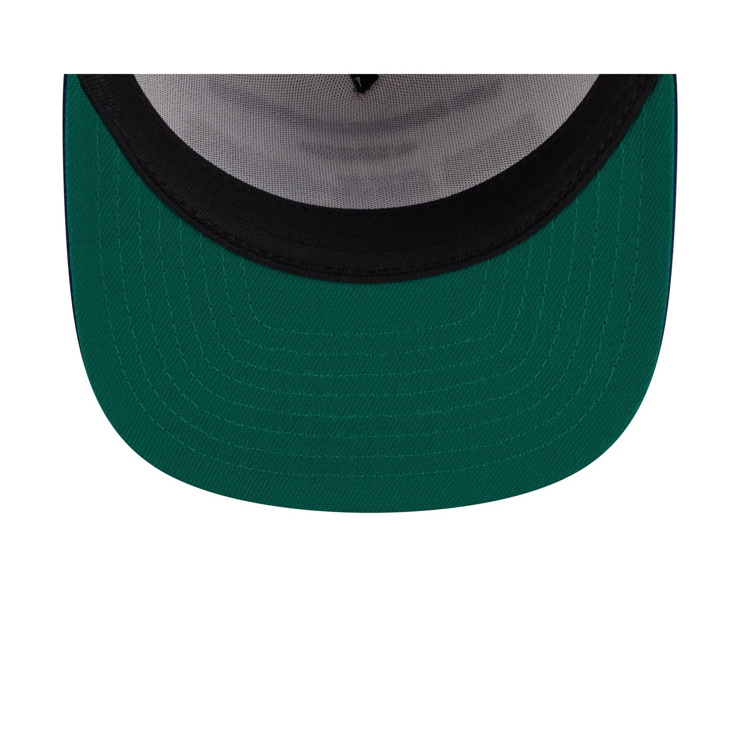 The Los Angeles Dodgers Summer Derby White 59FIFTY A-Frame Fitted Cap features an embroidered Dodgers Cooperstown wordmark and a 1980 All-Star Game wordmark at the front panel with a matching All-Star Game patch at the right-wear side. Additional details include a team color MLB Batterman logo at the rear, a blue visor, and a green undervisor.