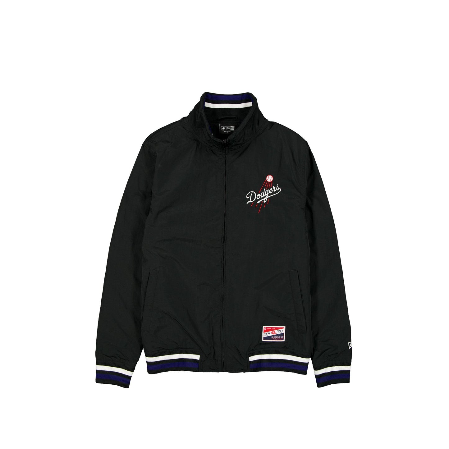 The Los Angeles Dodgers Throwback Nylon Jacket features a nylon applique Dodgers graphic embroidered at the front left chest and rear. Addition details a full-zip closure and front pockets.