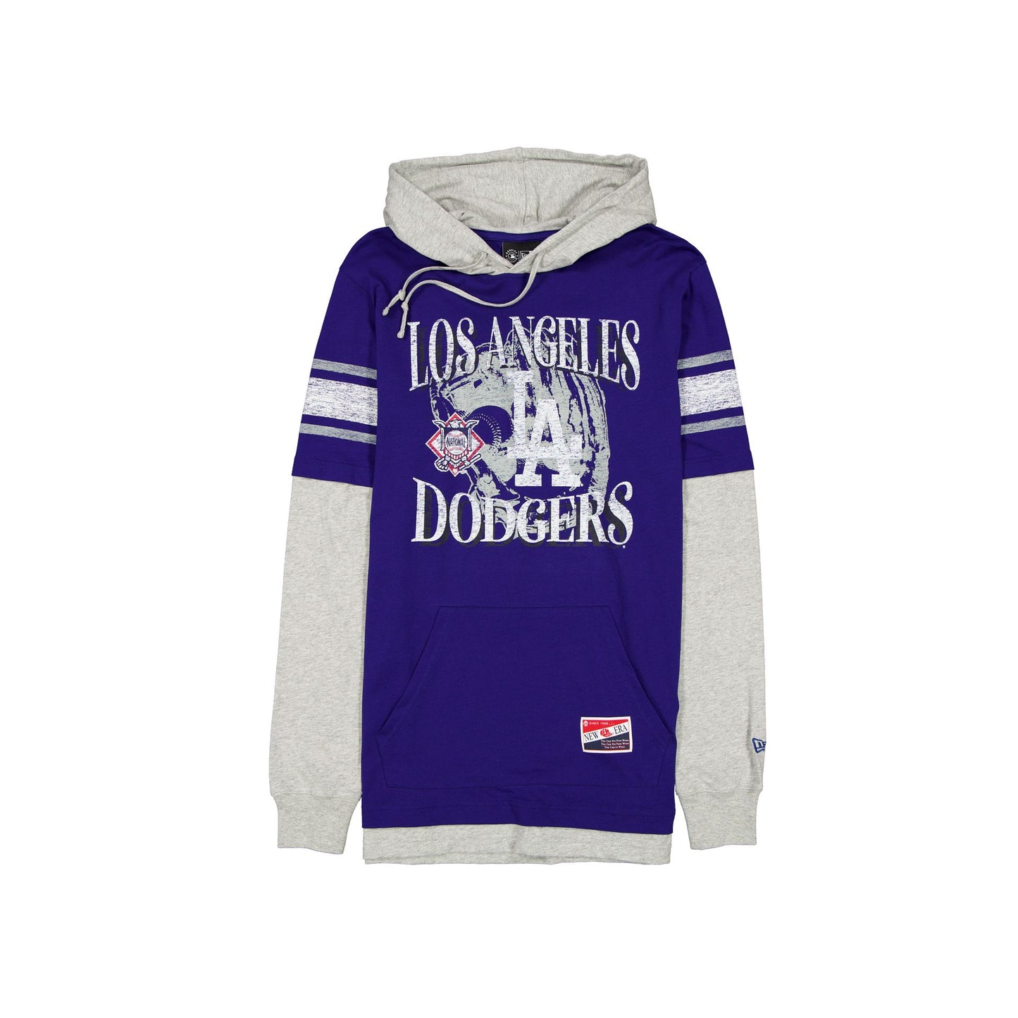 The Los Angeles Dodgers Twofer Throwback Hoodie features a screen-printed Dodgers graphic at the front with kangaroo pockets and adjustable drawstrings at the hood.