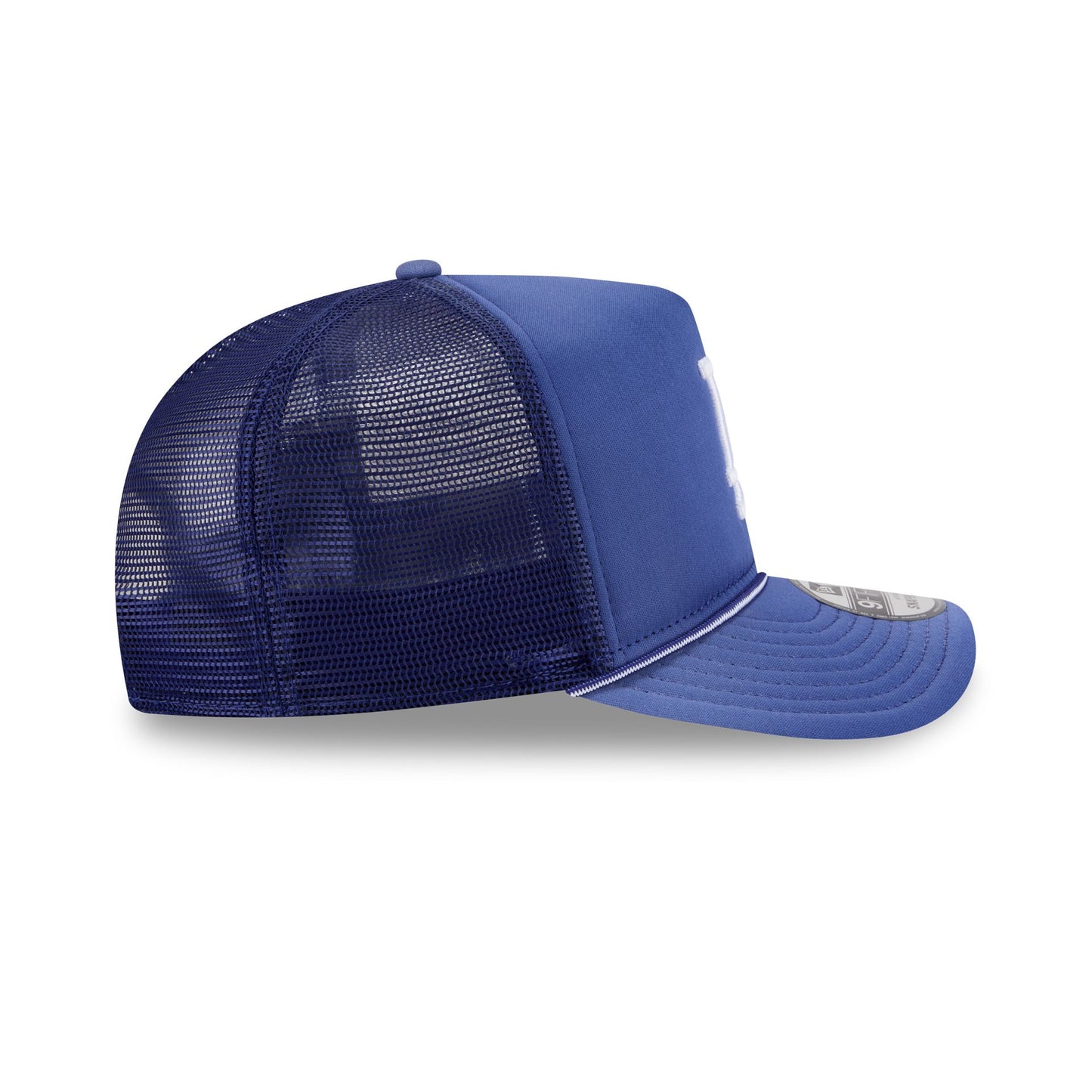 The Los Angeles Dodgers Worn 9FIFTY A-Frame Trucker features an embroidered Dodgers logo at the front panels against a softly washed fabrication. Additional details include an adjustable snapback closure at a mesh rear and a gray undervisor.