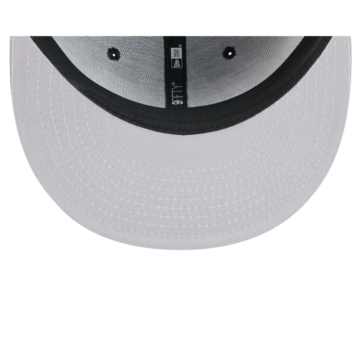 The Los Angeles Kings Team Color 9FIFTY Snapback features an embroidered Kings logo at the front panels with a matching visor, a gray undervisor, and a snapback closure at the rear.