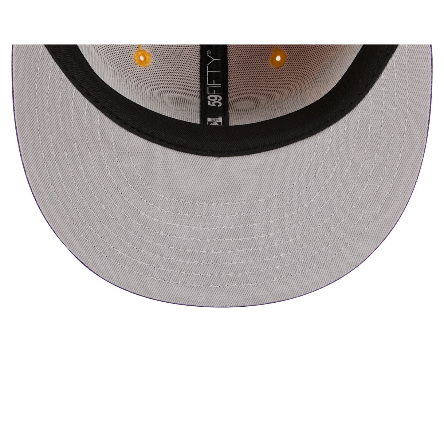 The Los Angeles Kings Bold Satin 59FIFTY Fitted Cap features an embroidered satin Kings Historic graphic at the front panels with a satin fabrication throughout. Additional details include a matching Vintage Hockey logo at the rear and a gray undervisor.