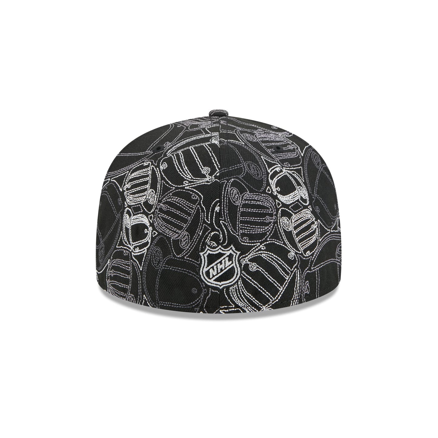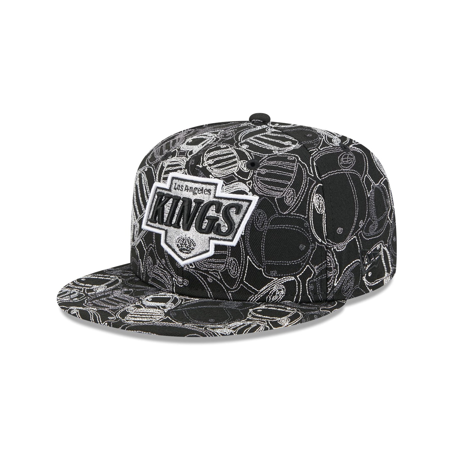 The Los Angeles Kings Cap Scramble 59FIFTY Fitted Cap features an embroidered Kings logo at the front panels with chainstitched allover cap patterned fabrication, an NHL Shield at the rear, and a gray undervisor.