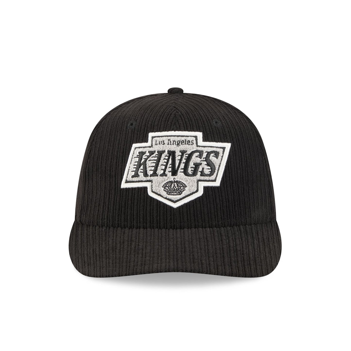 The Los Angeles Kings Chenille Pop 59FIFTY Fitted Cap features an embroidered Kings chenille logo at the front panels with a soft striped fabric throughout the cap. Additional details include a matching NHL Shield logo at the rear and a gray undervisor. This cap comes with a pre-curved visor.