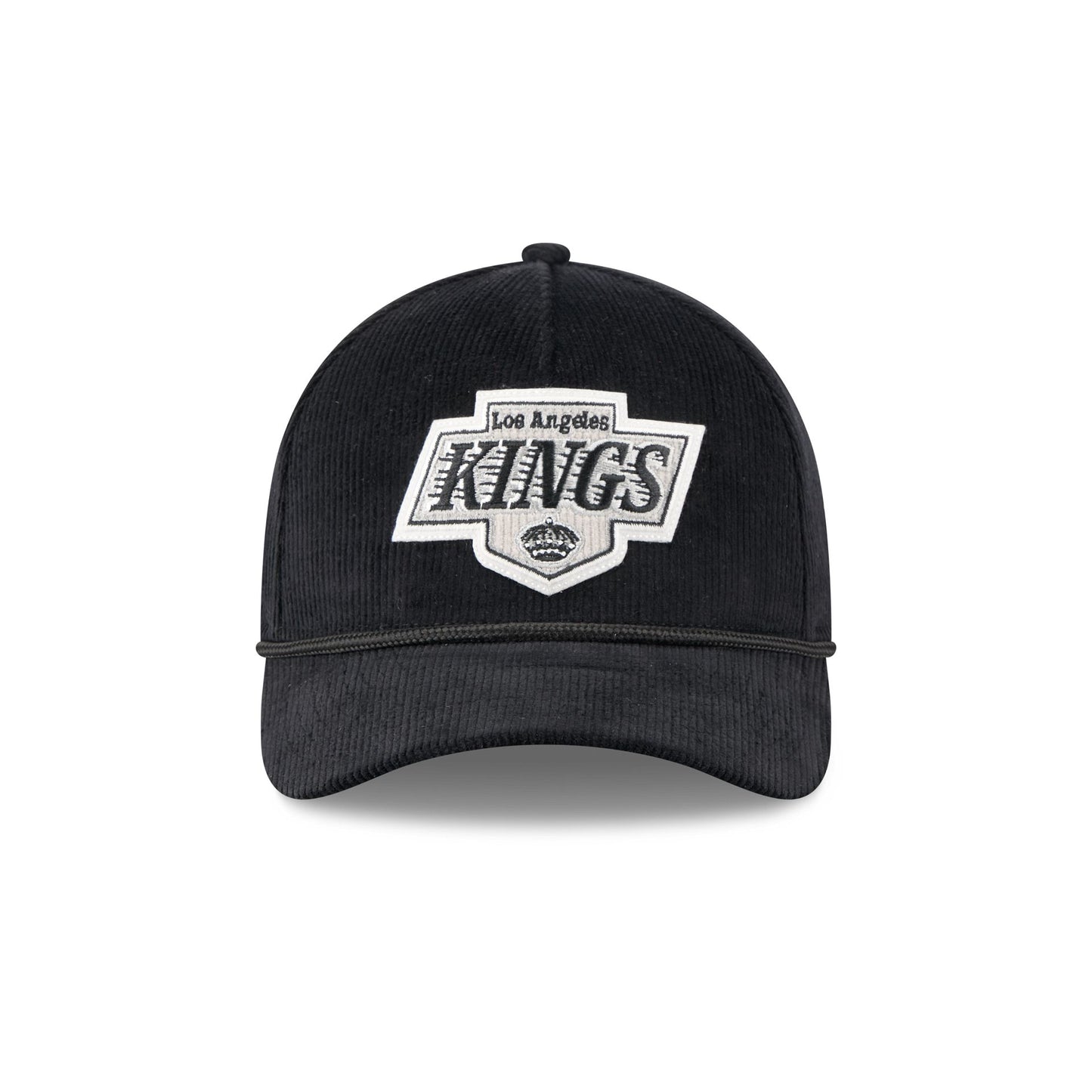 The Los Angeles Kings Corduroy 9FORTY M-Crown A-Frame Snapback features an embroidered Kings logo at the front panels with a corduroy fabrication throughout and a rope at the visor. Additional details include a snapback closure at the rear and a gray undervisor.