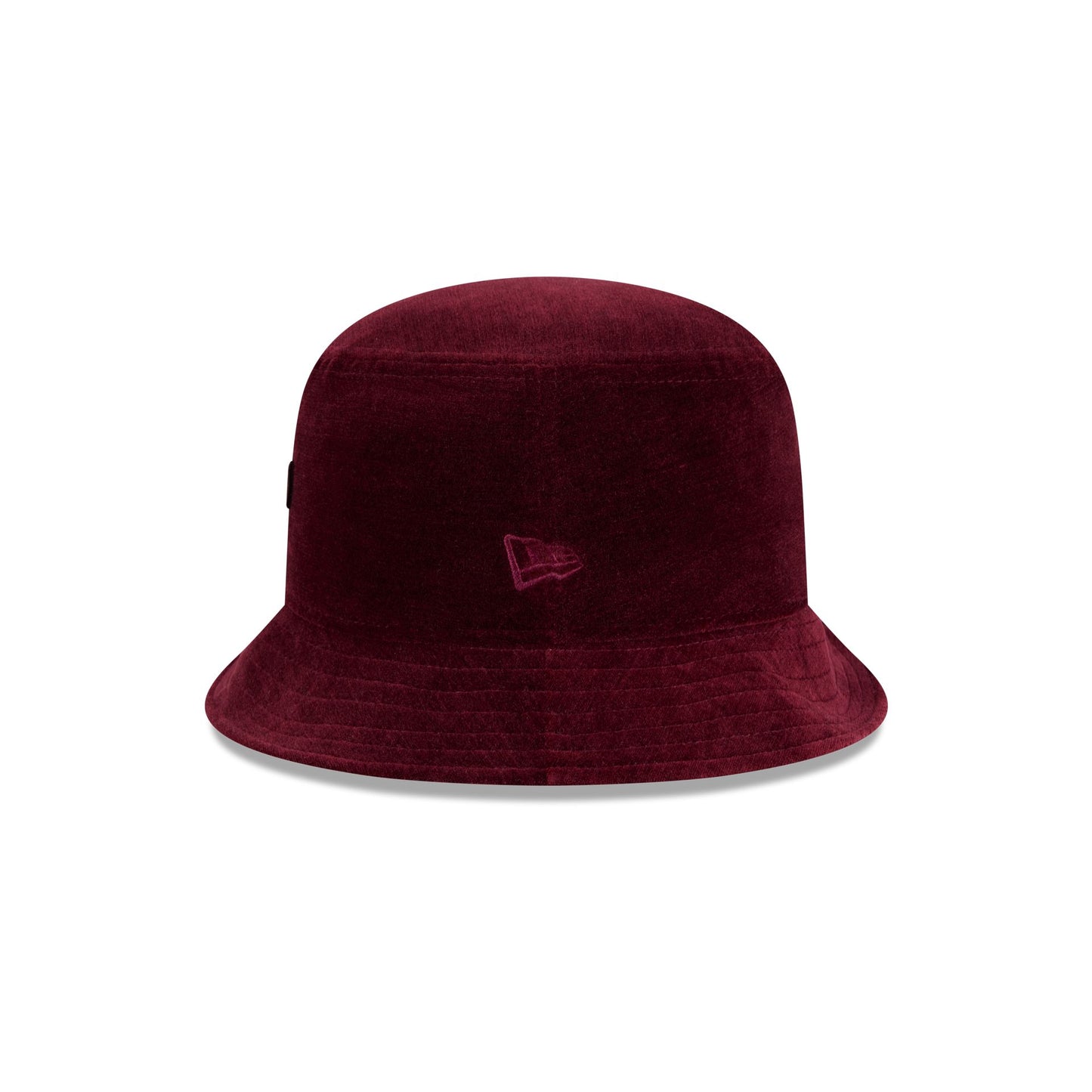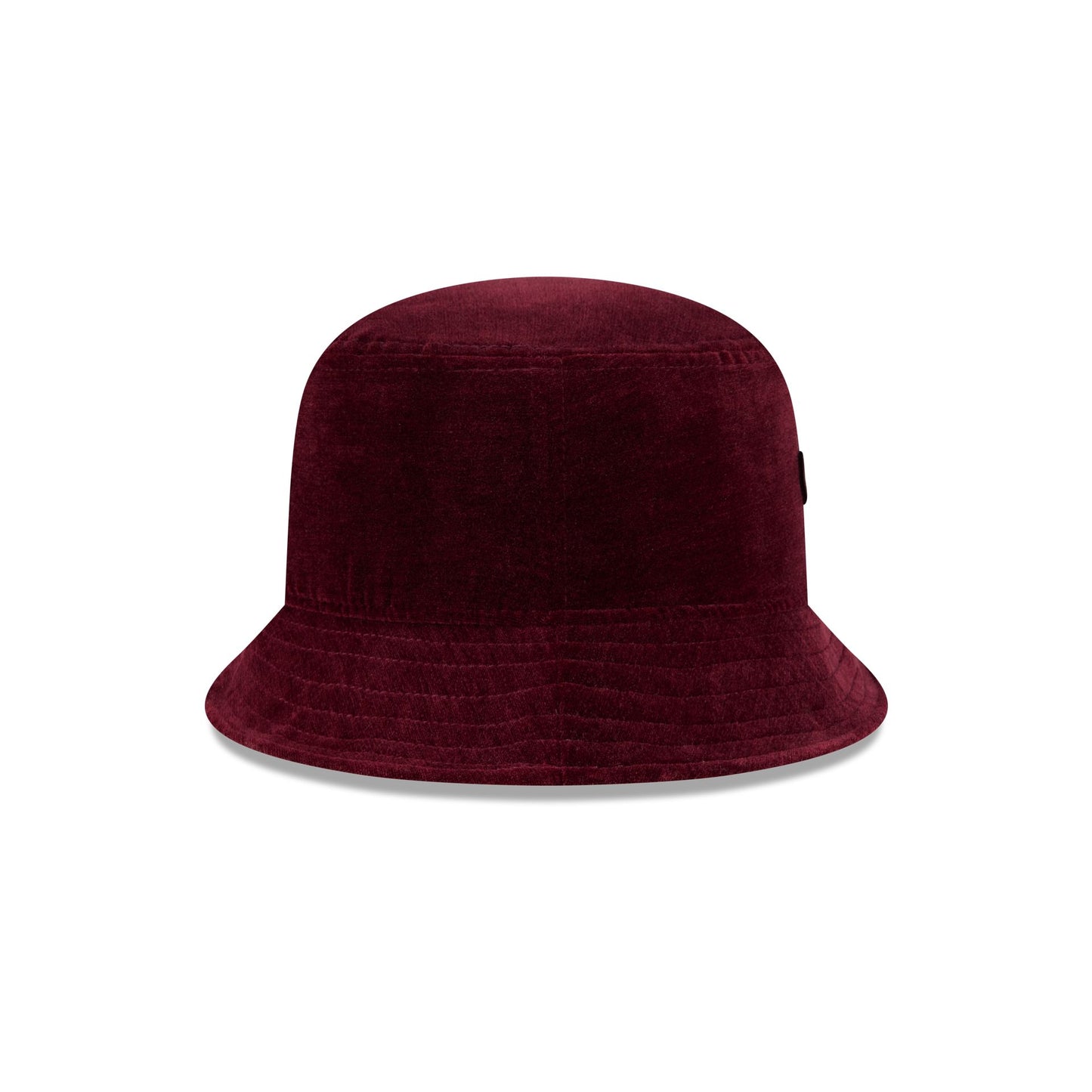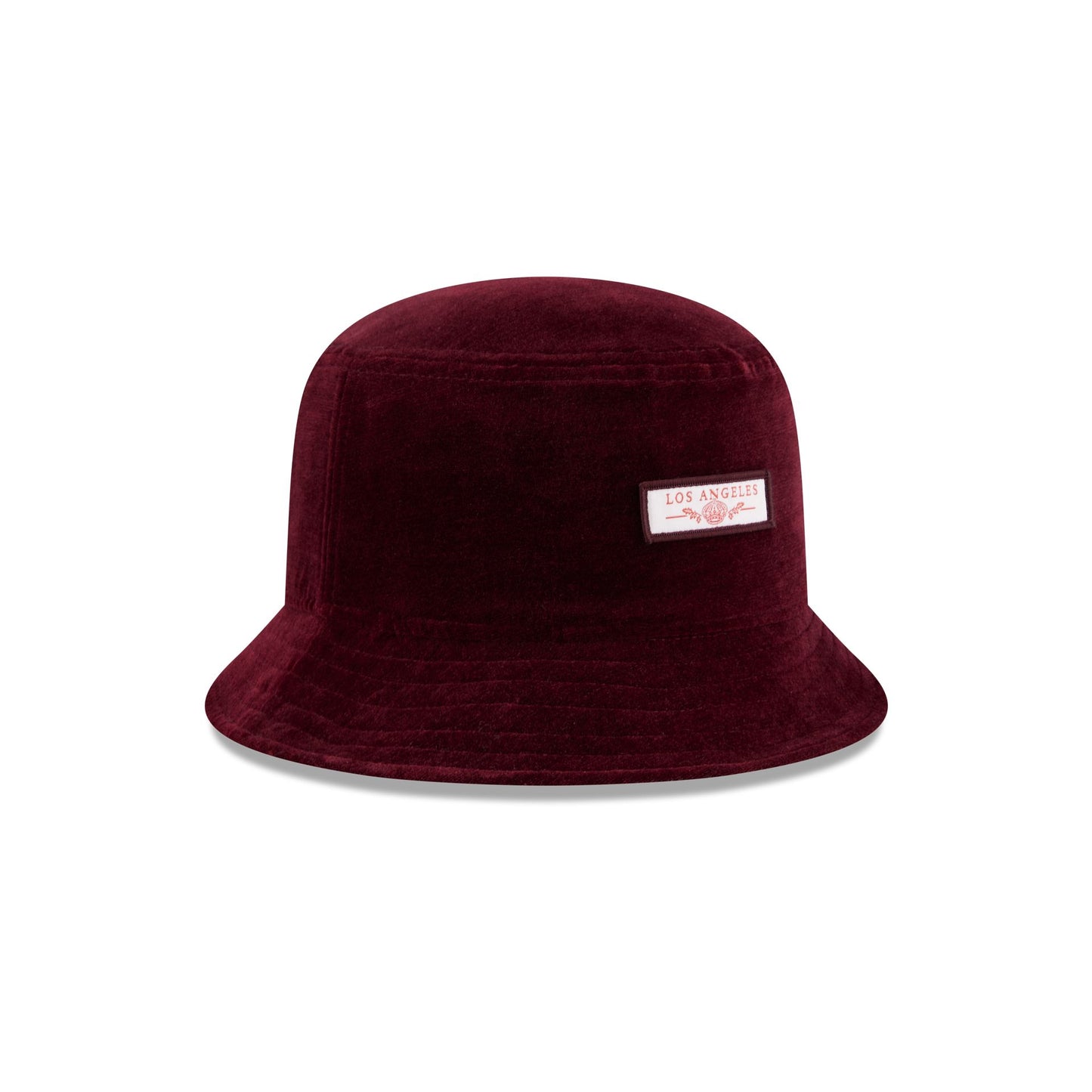 The Los Angeles Kings Fall Velvet Bucket Hat features a woven Kings tag at the front with a red velvet fabrication throughout.