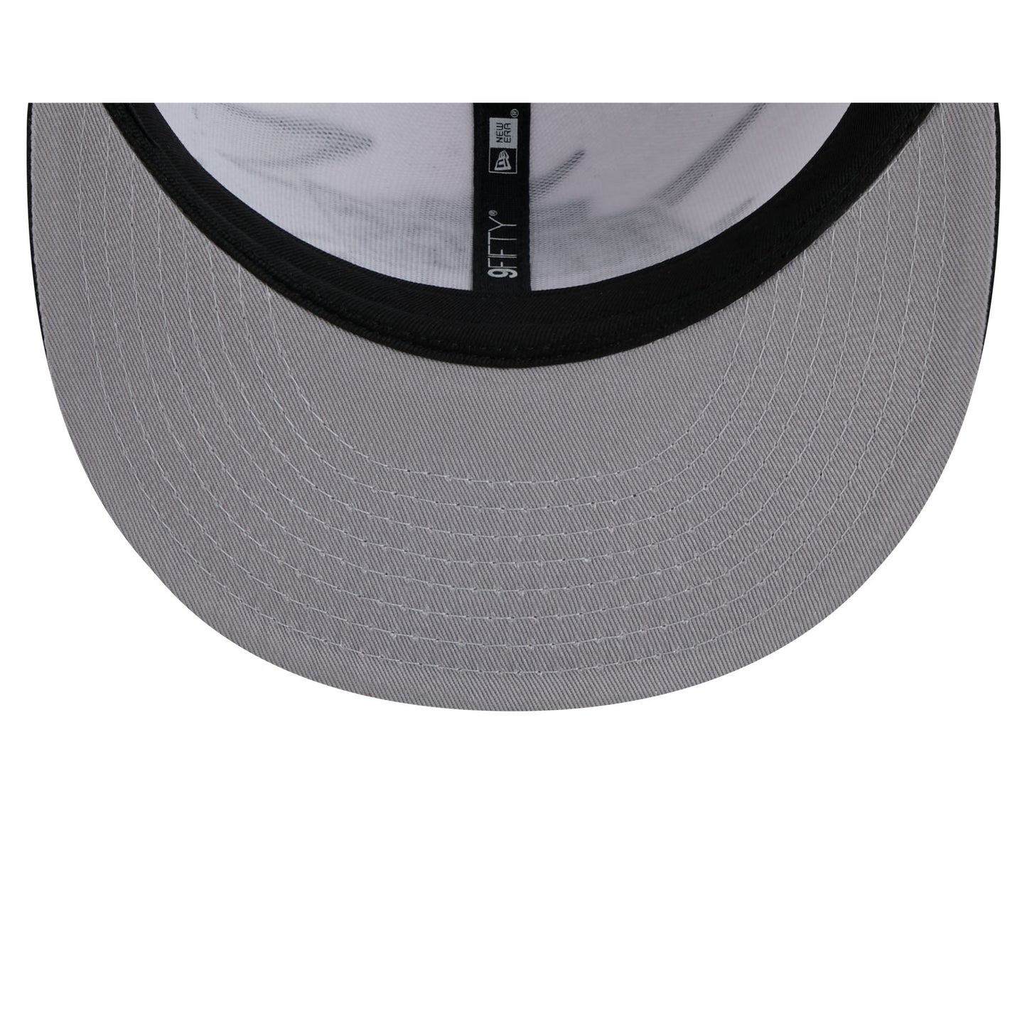 The Los Angeles Kings Jagged 9FIFTY Snapback features an embroidered Kings logo at the front panels with a jagged pattern fabrication throughout the cap. Additional details include a snapback closure at the rear and a gray undervisor.