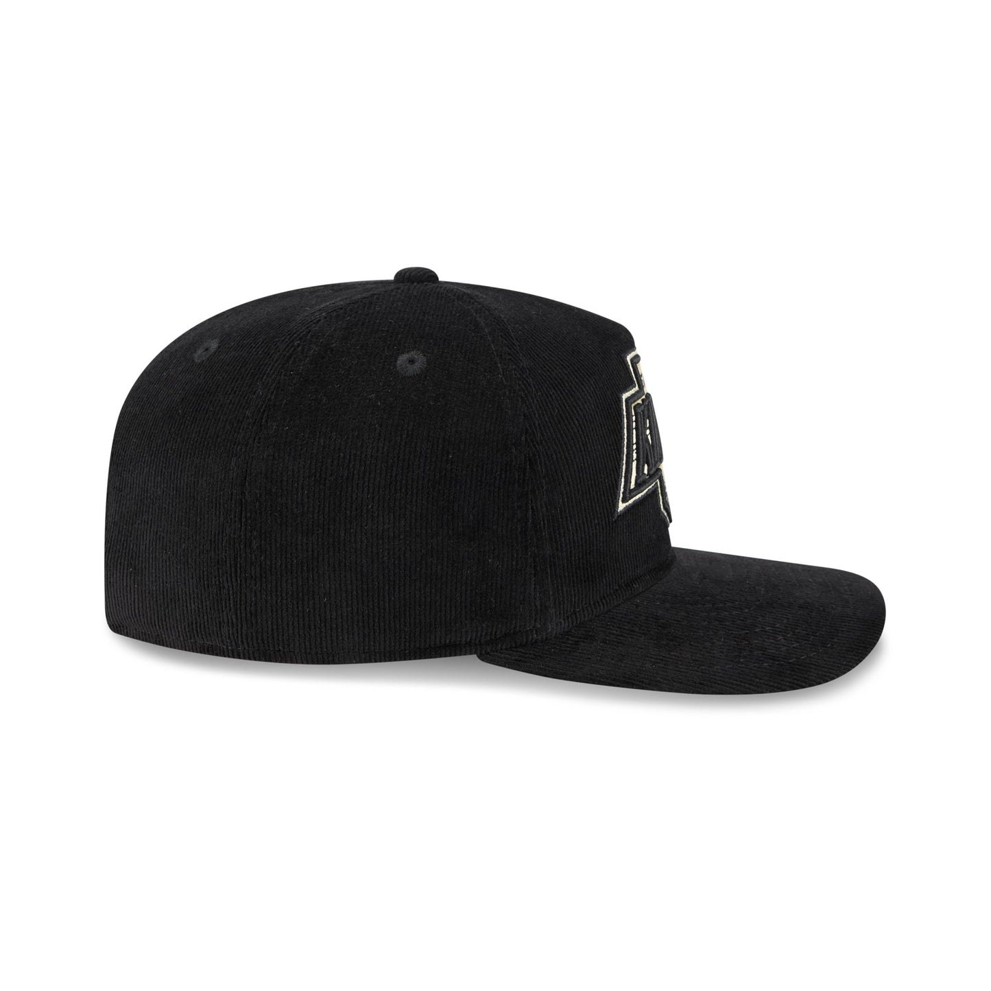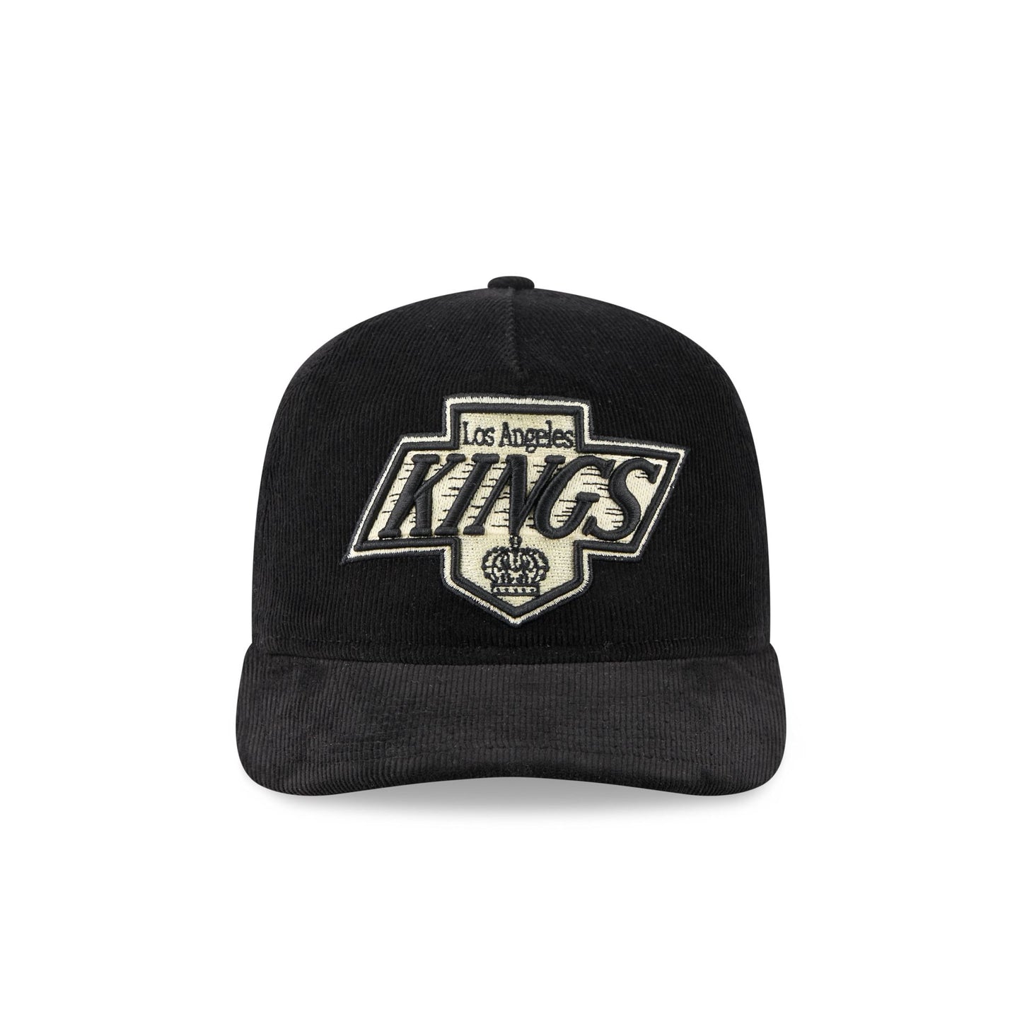 The Los Angeles Kings Nostalgic Black Corduroy 19TWENTY Adjustable Cap features an embroidered Kings Vintage logo at the front panel with a snapback closure at the rear and a gray undervisor.