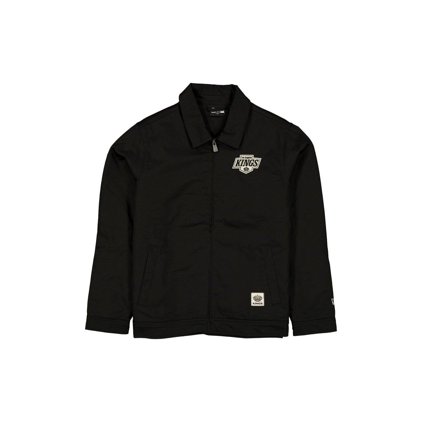 The Los Angeles Kings Quilted Jacket features a chain stitch embroidered Kings logo at the left chest with a matching team jock tag at the left slit pocket. Additional details include a full-zip closure with an interior pocket at the chest and adjustable snap button straps at the rear hem.