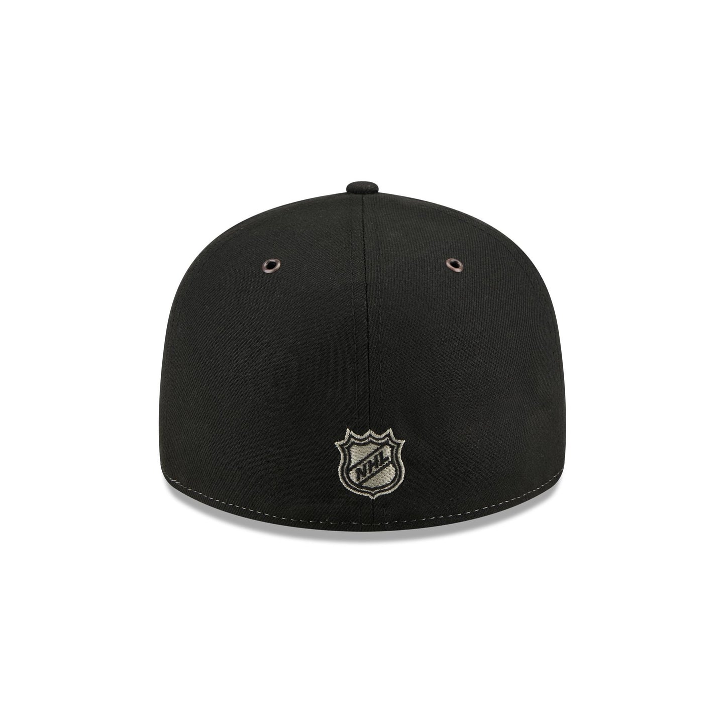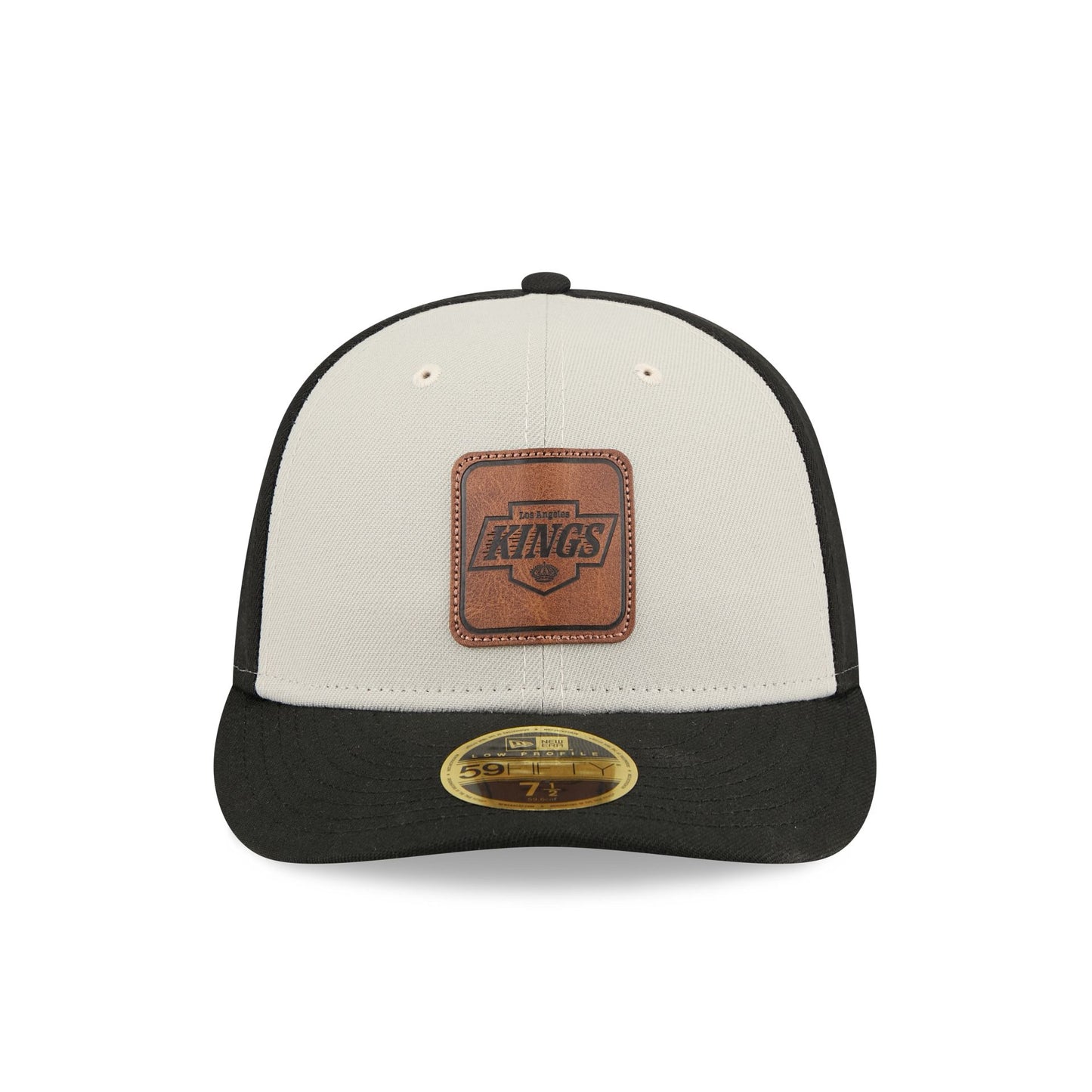The Los Angeles Kings Quilted Low Profile 59FIFTY Fitted Cap features a faux leather debossed applique Kings patch at the front panels with a matching 50th Anniversary team patch at the right-wear side and an embroidered NHL Shield at the rear.