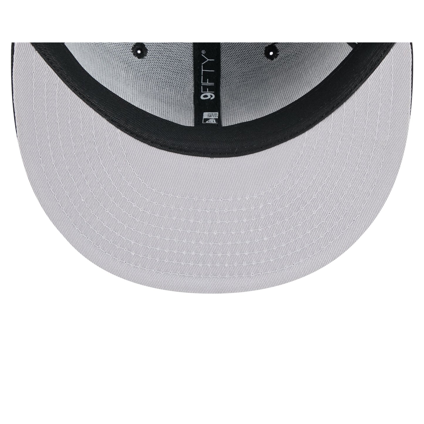 The Los Angeles Kings Script 9FIFTY Snapback features an embroidered Kings wordmark at the front panels with a team logo at the right-wear side. Additional details include a snapback closure at the rear and a gray undervisor.