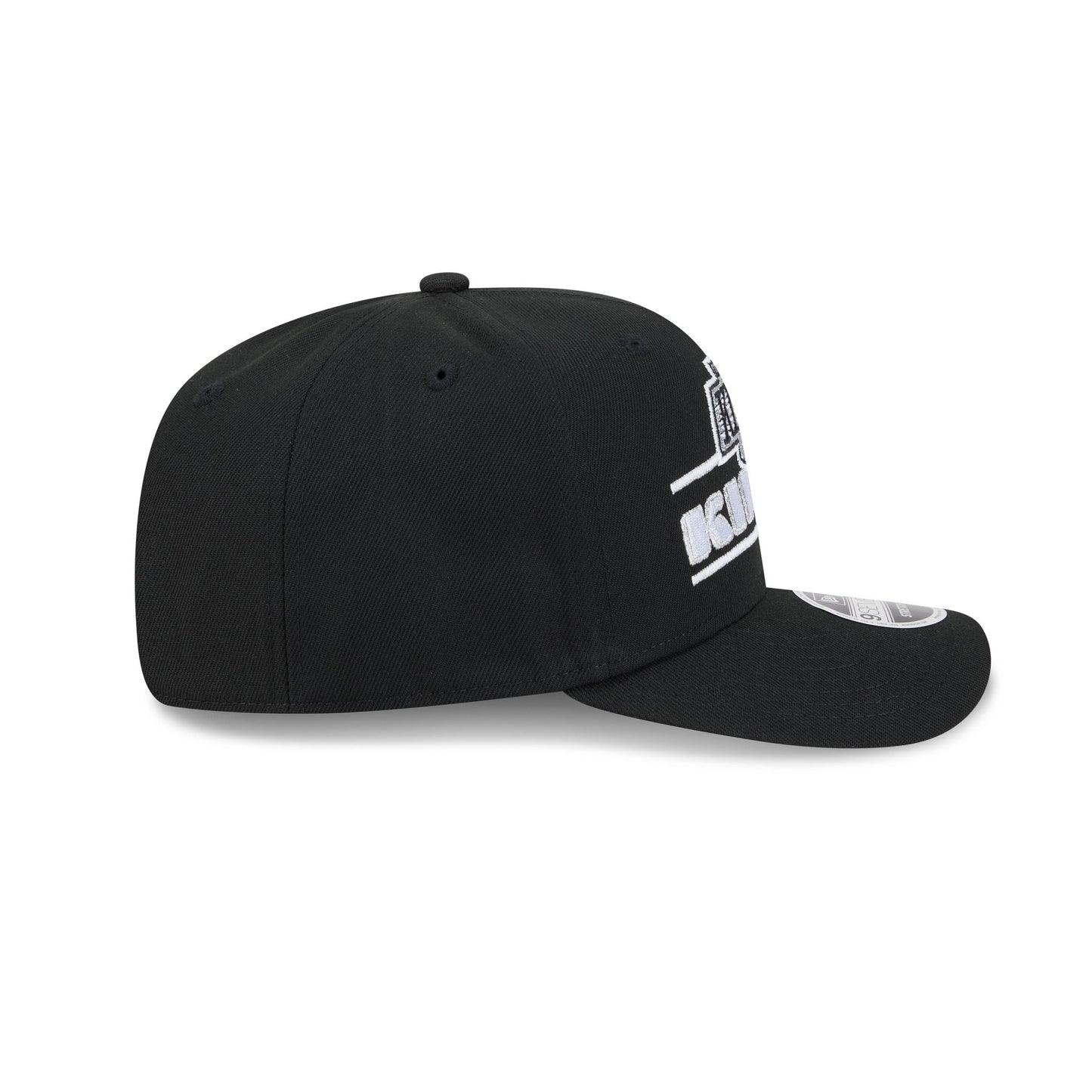 The Los Angeles Kings Stated 9SEVENTY Stretch-Snap features an embroidered Kings graphic a the front panels with an adjustable stretch-snap closure at the rear and a gray undervisor.