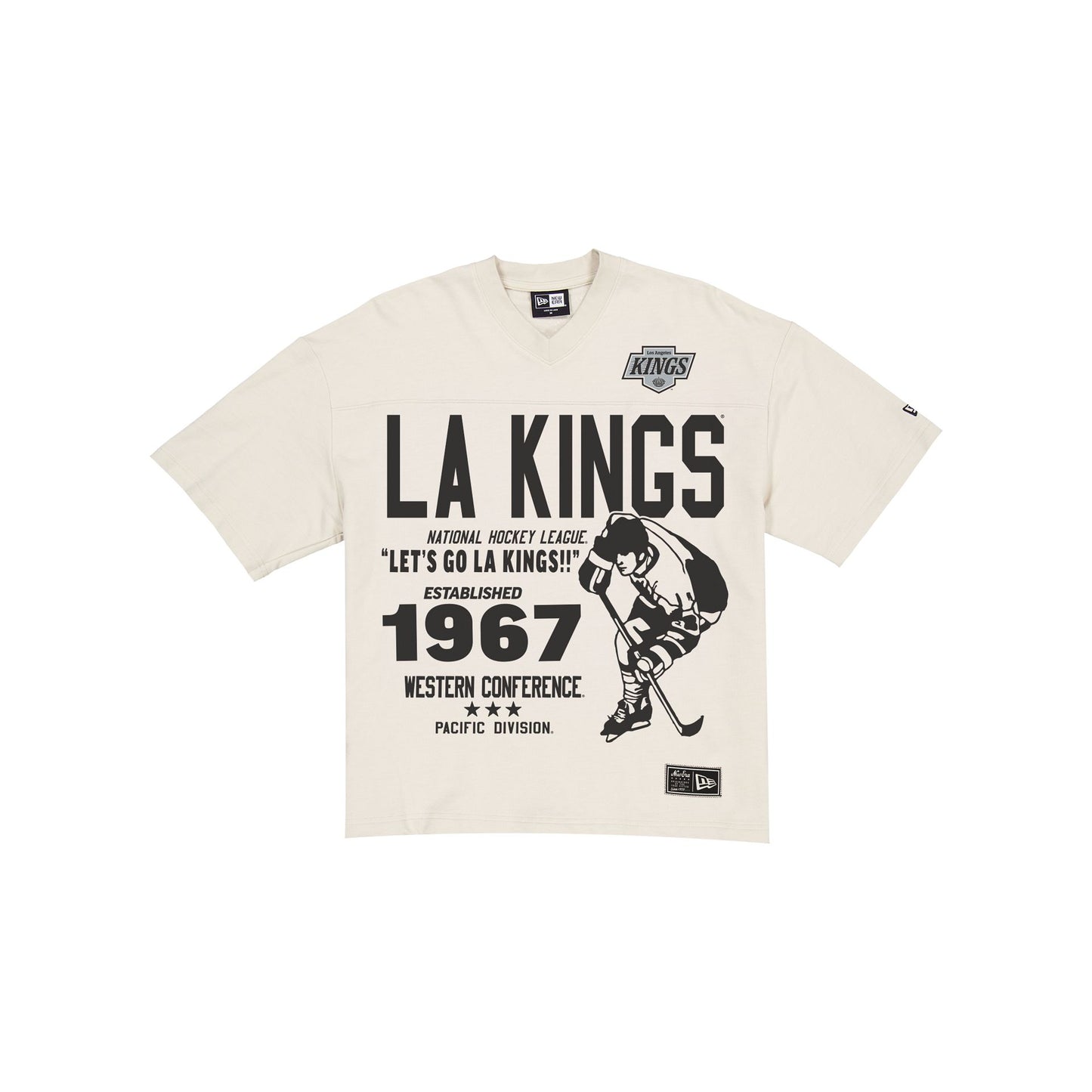 The Los Angeles Kings Throwback Prep Stone T-Shirt features a screen-printed Kings graphic at the front with a team logo at the left chest and a New Era jock tag at the left hip.