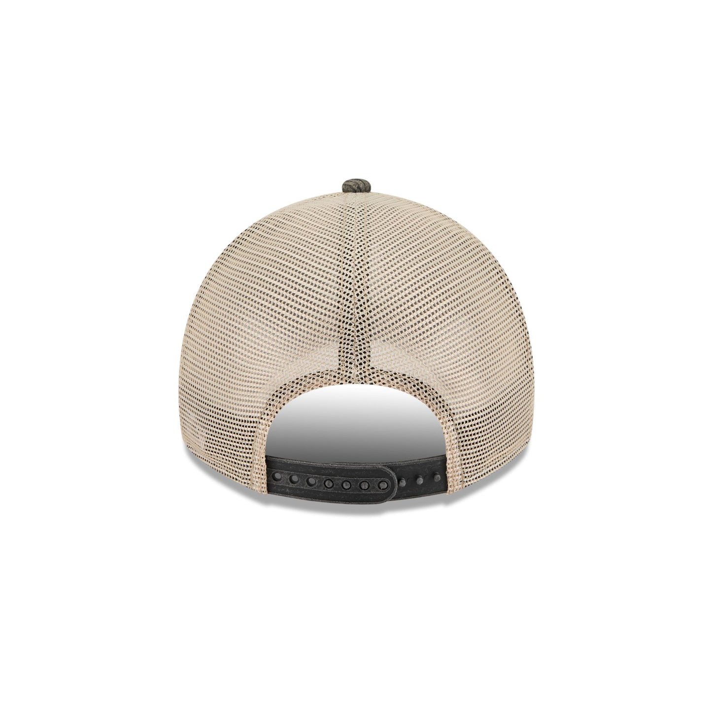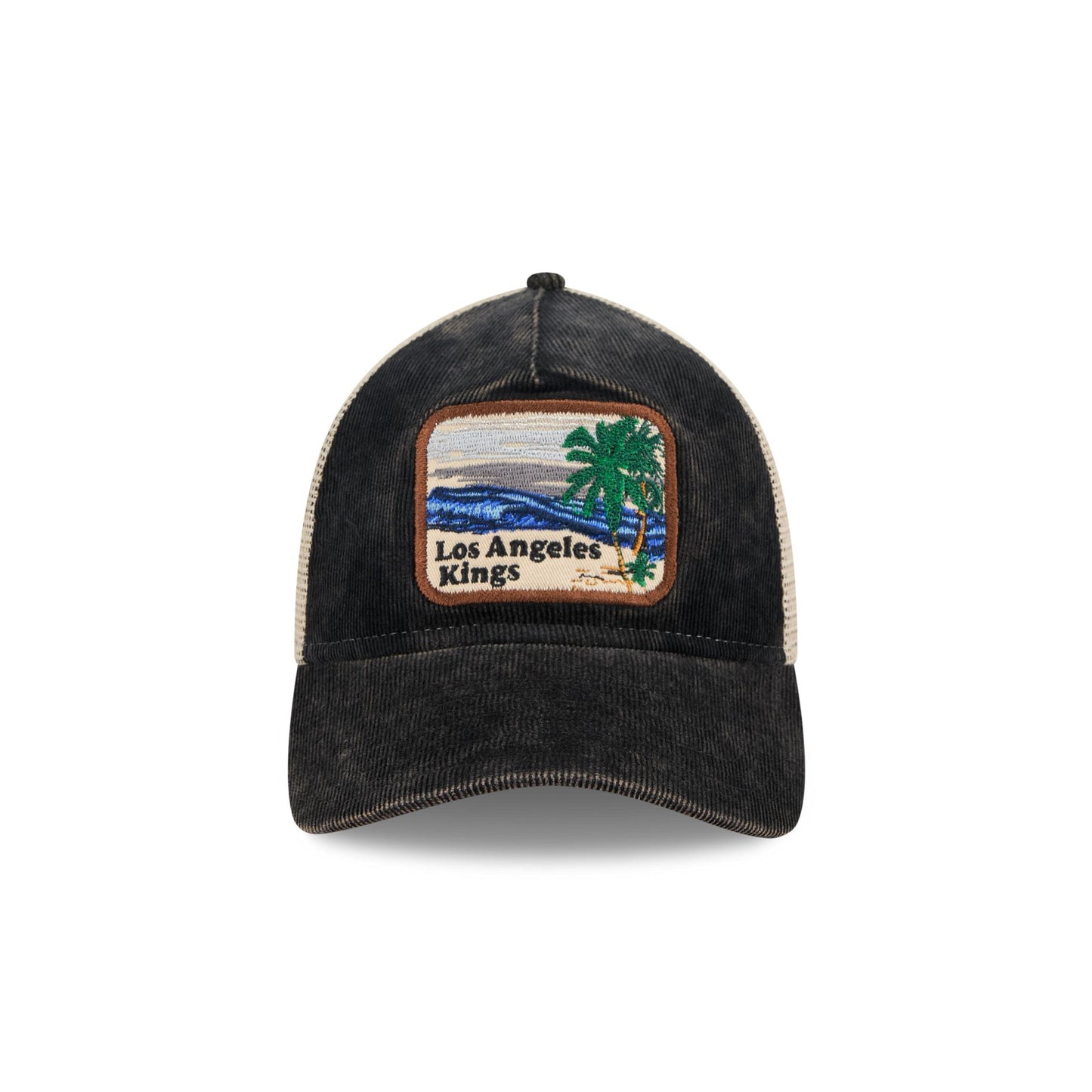 The Los Angeles Kings Vintage Landscape 9TWENTY A-Frame Trucker features an embroidered Kings Vintage Landscape patch at the front panels with a team logo at the right-wear side. Additional details include an adjustable snapback closure at the rear and a gray undervisor.