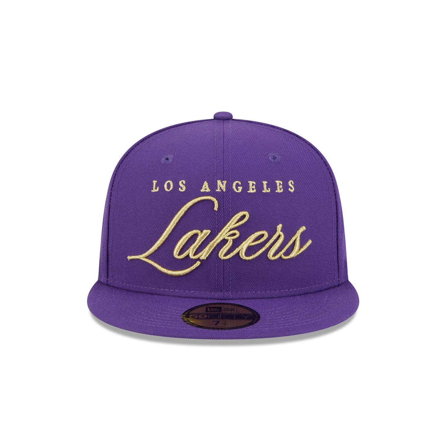 The Los Angeles Lakers 2026 All-Star Game Script Shine 59FIFTY Fitted Cap features an embroidered Lakers gold script at the front panels with the NBA All-Star Game logo at the right-wear side. Additional details include the NBA Logoman at the rear and a gray undervisor.