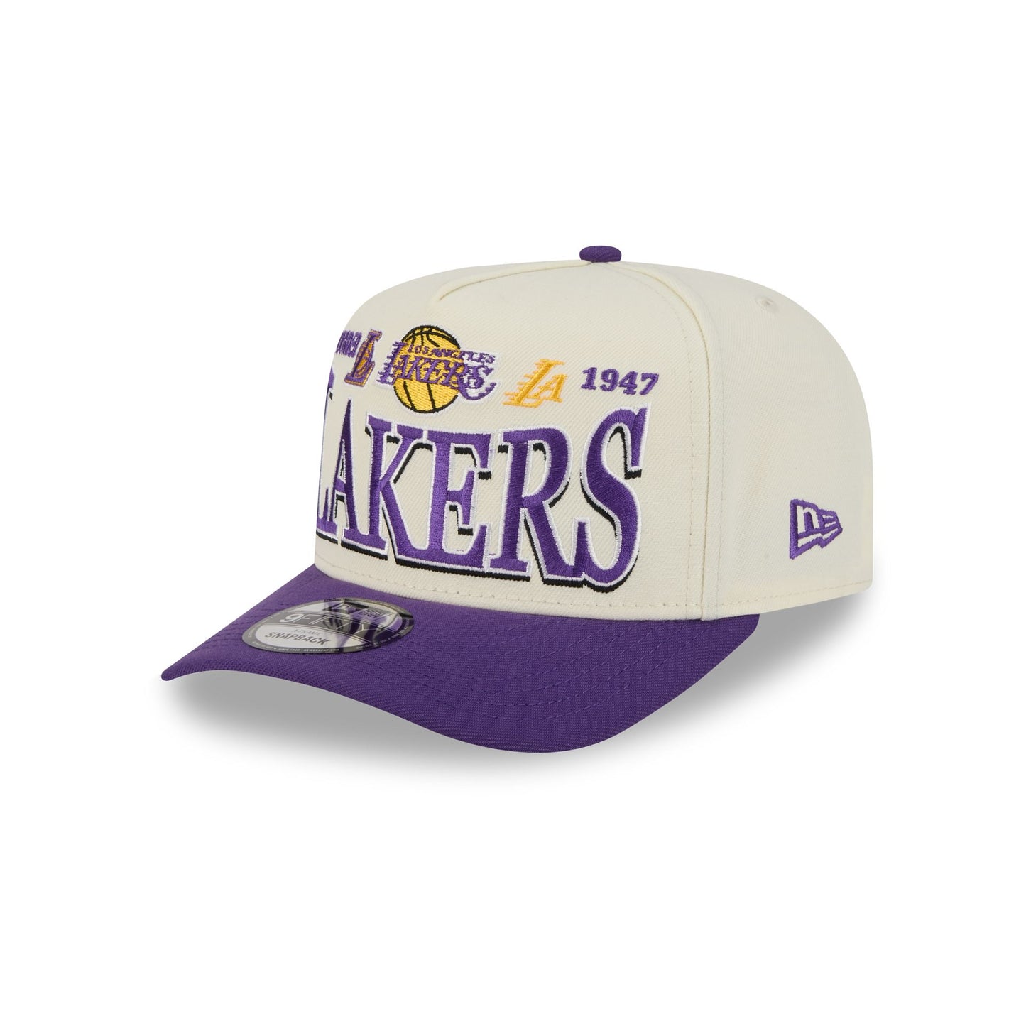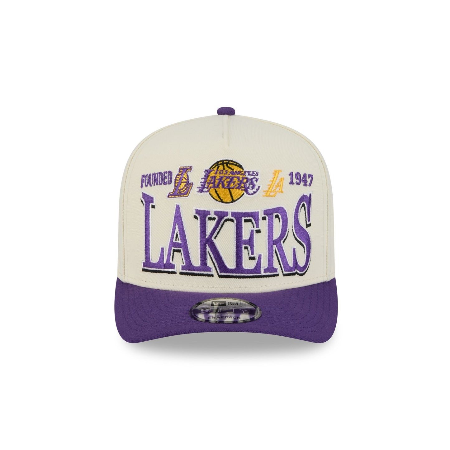 The Los Angeles Lakers All-Star Game Established 9FIFTY A-Frame Snapback features an embroidered Lakers wordmark and establishment graphic at the front panels with an adjustable snapback closure at the rear and a green undervisor.