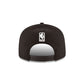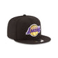 The Los Angeles Lakers Black 9FIFTY Snapback features an allover black fabrication with an embroidered Lakers logo at the front panels and an embroidered NBA logo at the rear above an adjustable snapback closure.