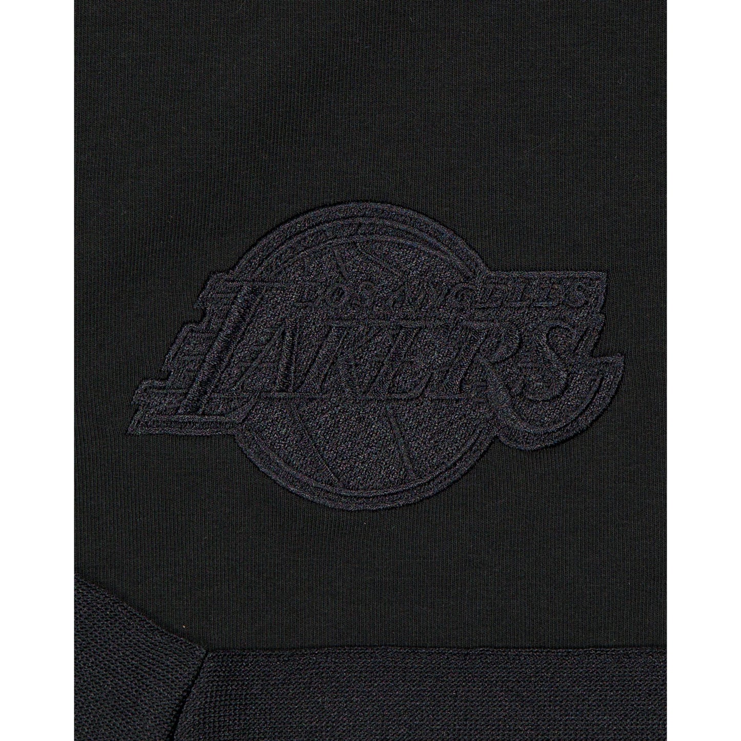 The Los Angeles Lakers Black on Black Logo Select Shorts features an embroidered Lakers logo at the right-wear leg and a satin applique with a tonal stitch team wordmark at the rear left leg.