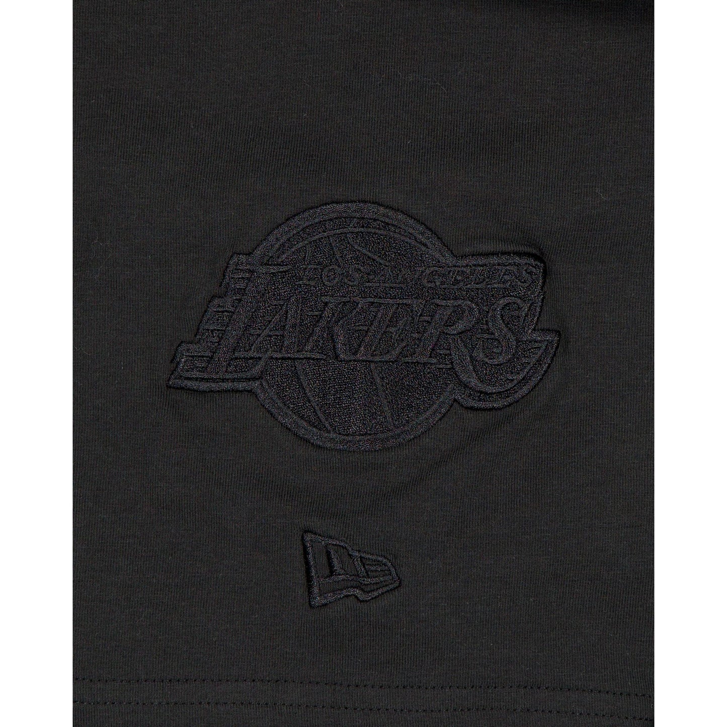 The Los Angeles Lakers Black on Black Logo Select T-Shirt features a satin applique with a tonal stitch Lakers wordmark at the chest and an embroidered team logo at the left-wear sleeve.