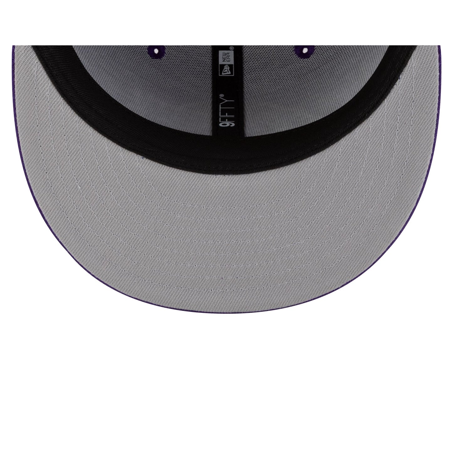 The Los Angeles Lakers Christmas Day Game 9FIFTY Snapback features an embroidered Lakers logo at the front panels with an NBA Logoman snowflake patch at the right-wear side. Additional details include an adjustable white snapback closure at the rear and a gray undervisor.
