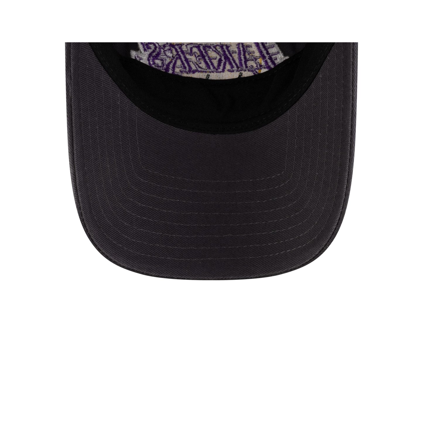 The Los Angeles Lakers Core Classic Gray 9TWENTY Adjustable Cap features an embroidered Lakers logo at the front panels with a team tag on an adjustable D-Ring closure at the rear.