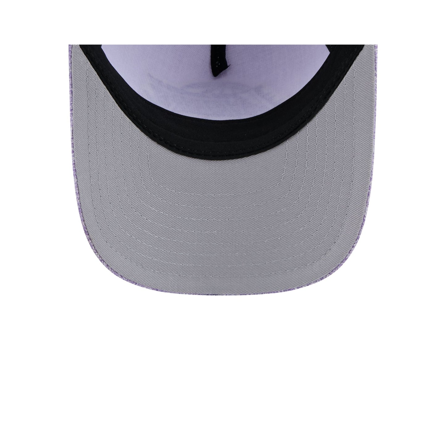 The Los Angeles Lakers Cotton Weave Purple 9FORTY M-Crown A-Frame Snapback features an embroidered Lakers logo at the front panels with an adjustable snapback closure at the rear and a gray undervisor.