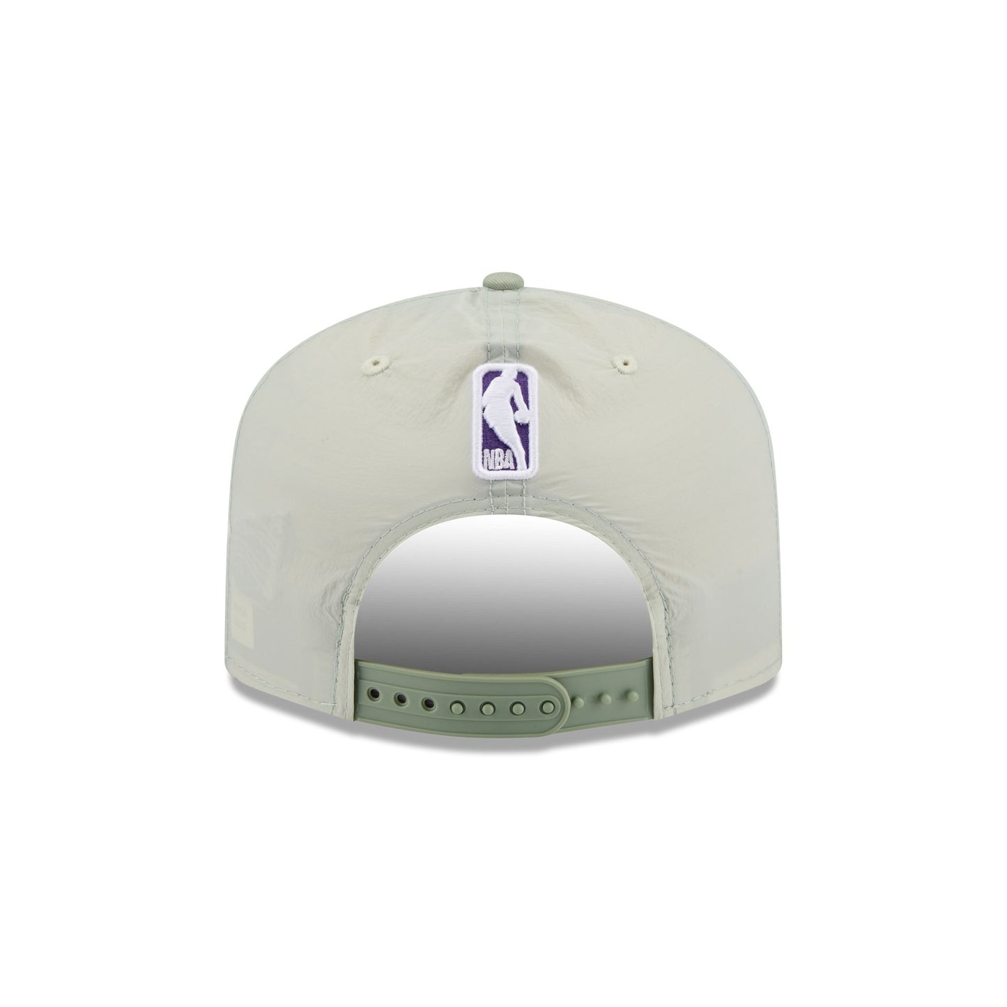 The Los Angeles Lakers Crinkle 19TWENTY Adjustable Cap features an embroidered Lakers logo at the front panels with a nylon fabrication throughout. Additional details include the NBA Logoman above an adjustable snapback closure at the rear and a green undervisor.