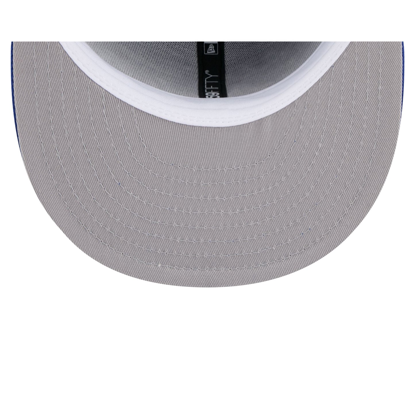 The Los Angeles Lakers 1960-1965 Hardwood Classics 59FIFTY Fitted Cap features an embroidered vintage Lakers logo at the front panels with the NBA Logoman at the rear and a gray undervisor.
