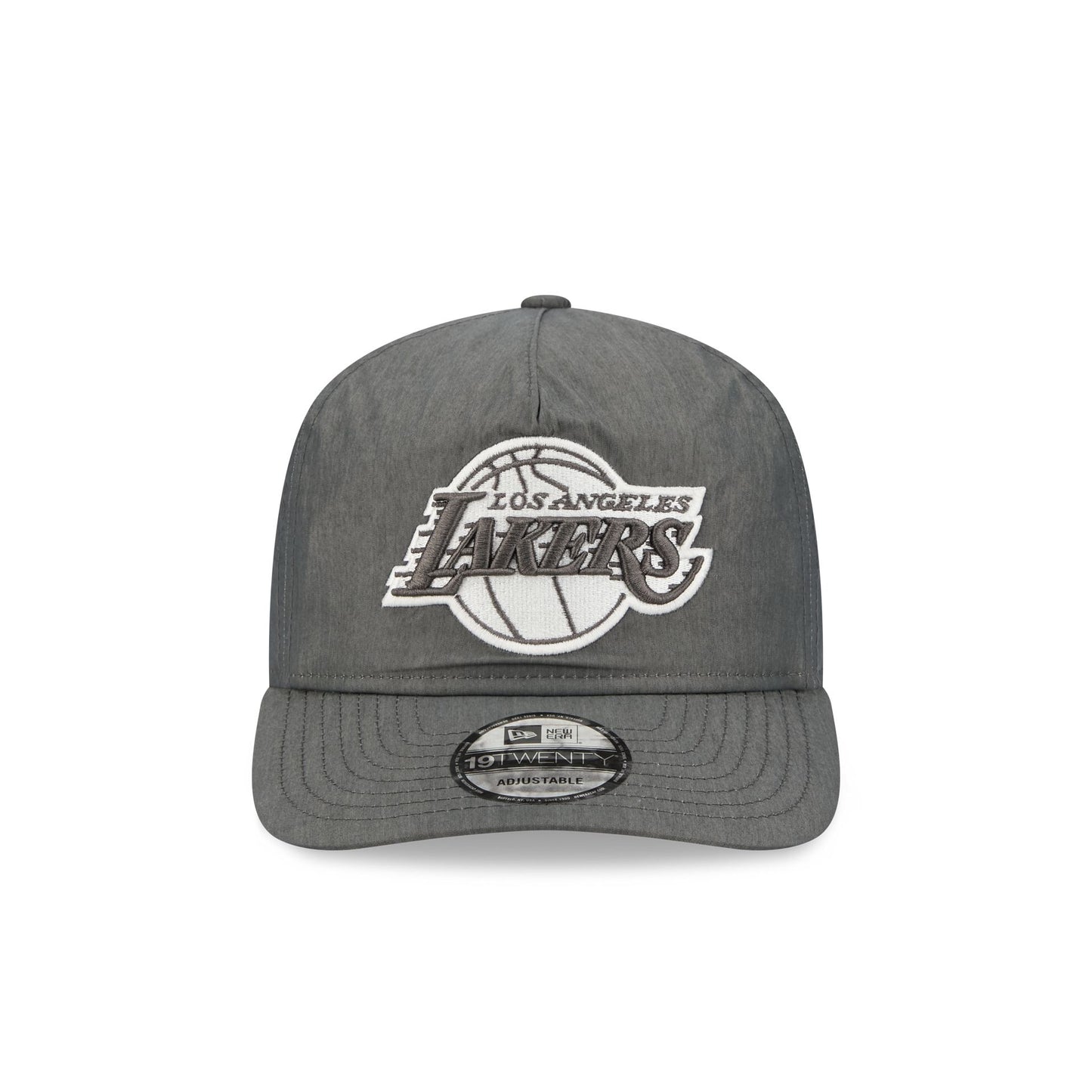 The Los Angeles Lakers Heather Gray Nylon 19TWENTY Adjustable Cap features an embroidered Lakers white logo at the front panels with an adjustable snapback closure at the rear and a gray undervisor.