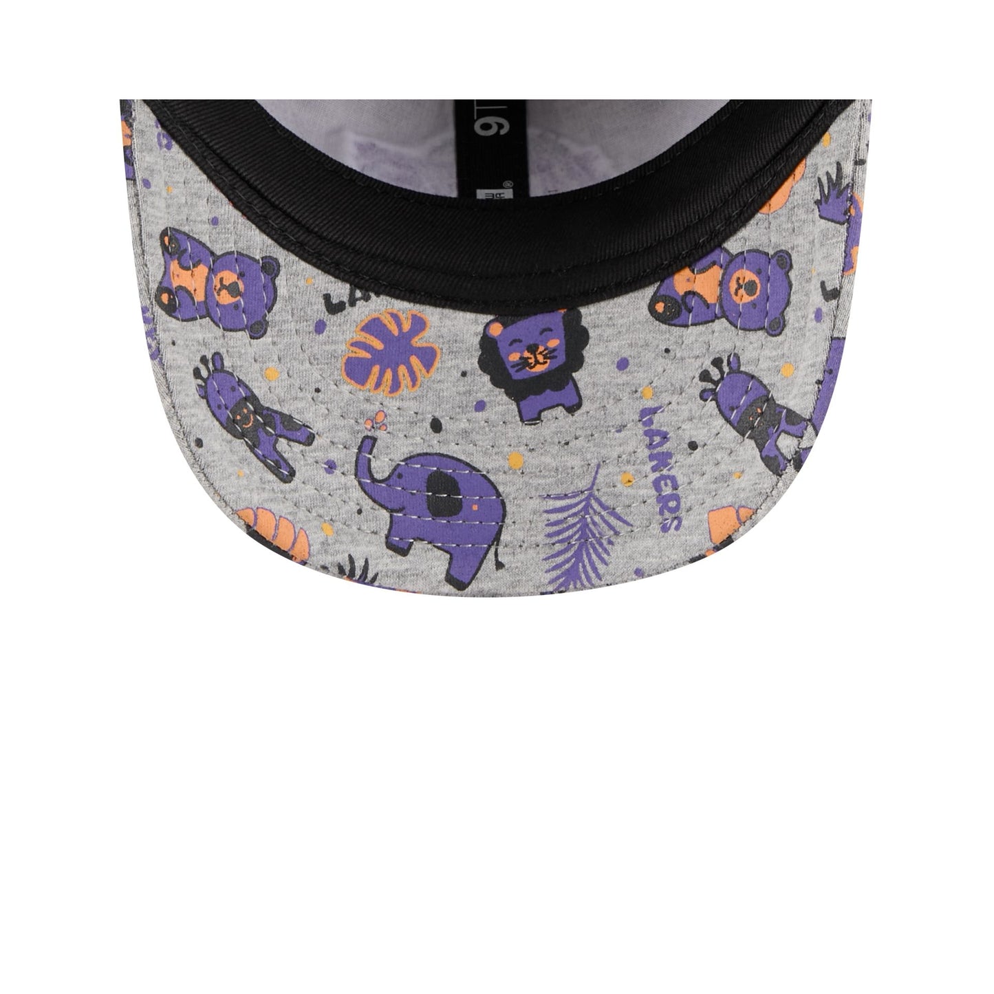 The Los Angeles Lakers Kids Animal 9TWENTY Adjustable Cap features an embroidered Lakers logo at the front panels with screen-printed animals throughout and a soft stretch cord at the rear.