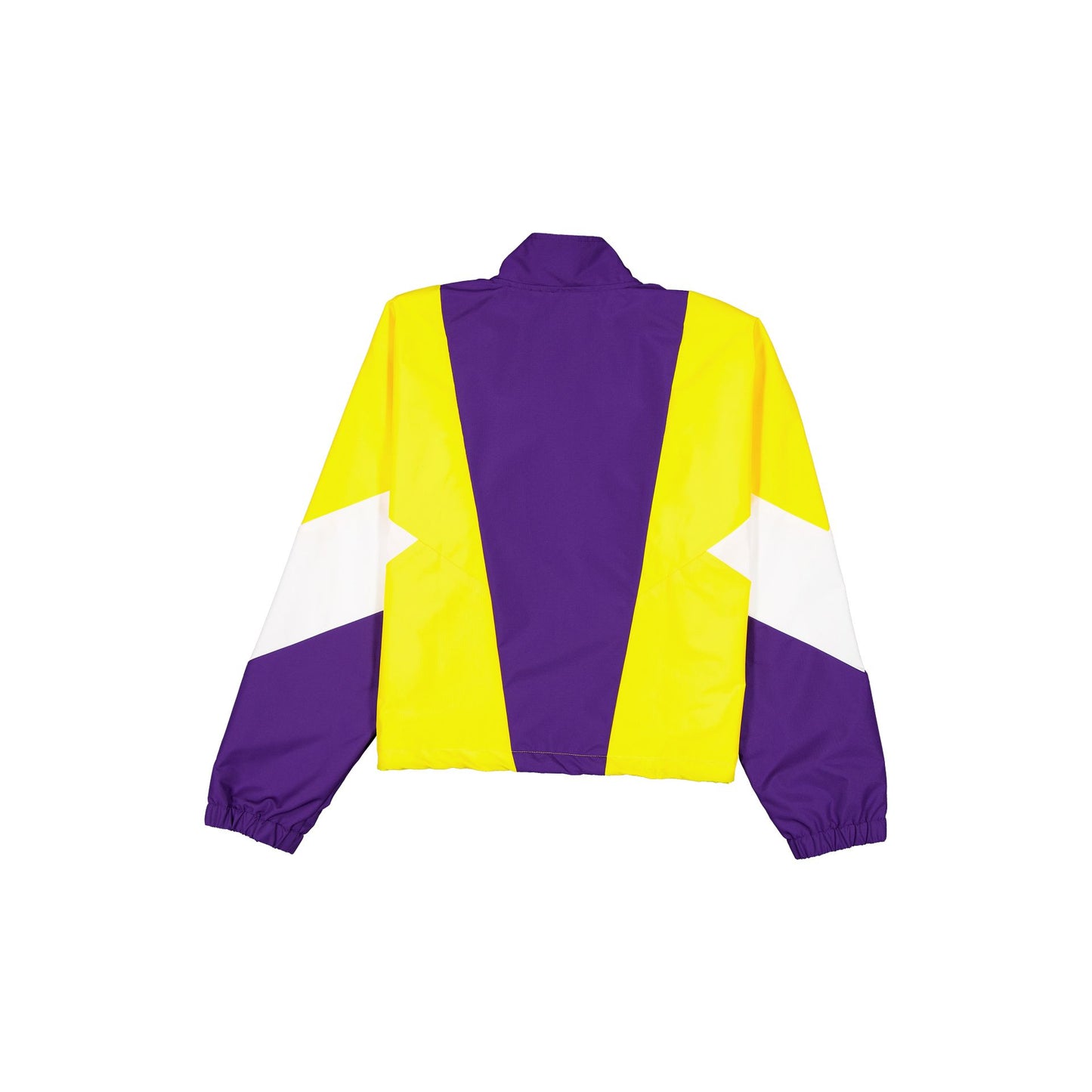 The Los Angeles Lakers Leisure Women's Full-Zip Windbreaker features a foil print Lakers logo at the left chest with front pockets and a full-zip closure.