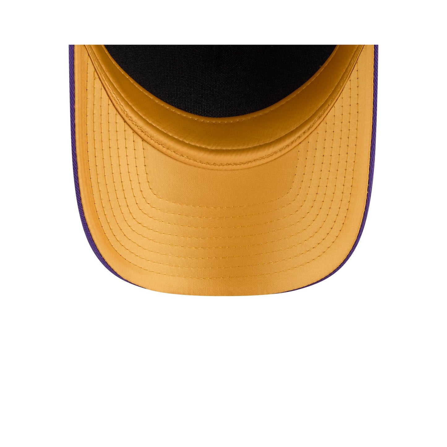 The Los Angeles Lakers Metallic Women's 9FORTY M-Crown A-Frame Snapback features an embroidered Lakers metallic script wordmark at the front panel with a snapback closure at the rear and a satin undervisor.