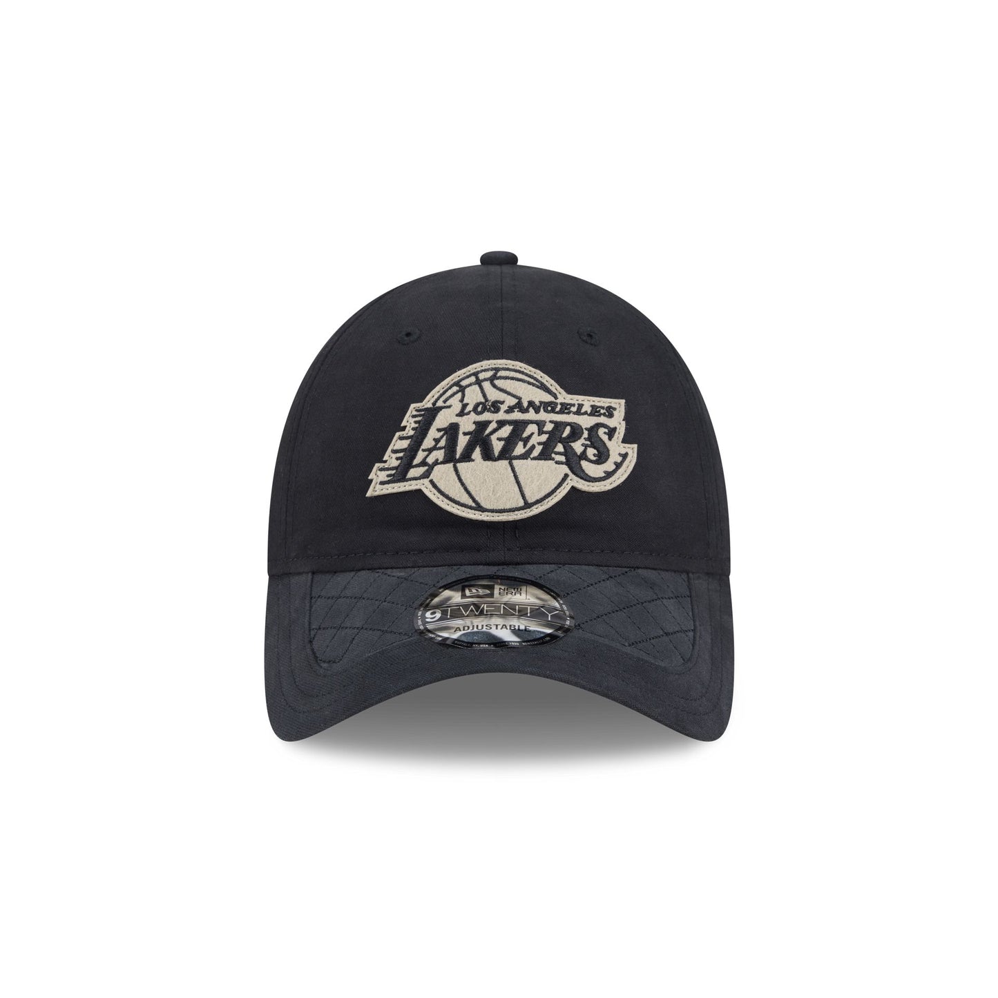 The Los Angeles Lakers Quilted 9TWENTY Adjustable Cap features a double layered felt applique Lakers logo at the front panels with a matching team wordmark tag above an adjustable D-Ring closure at the rear, a brushed cotton fabrication, and quilted stitch details at the visor.