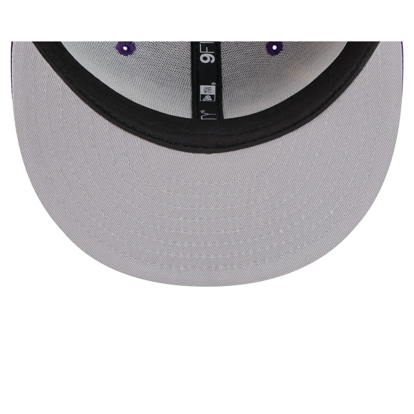 The Los Angeles Lakers Kids 9FIFTY Snapback Hat features an embroidered Lakers wordmark at the front panels with a matching team logo at the right-wear side. Additional details include a gray undervisor and a snapback closure at the rear.
