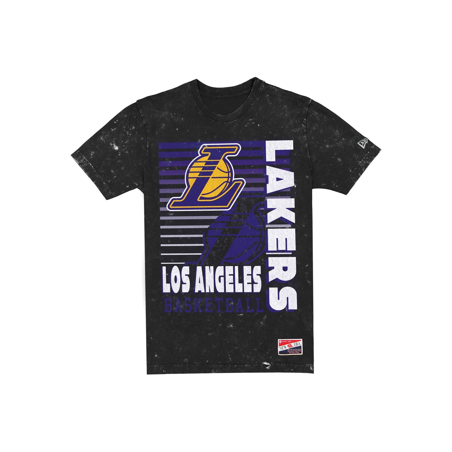 The Los Angeles Lakers Throwback Washed Black T-Shirt features a screen-printed Lakers graphic at the front.