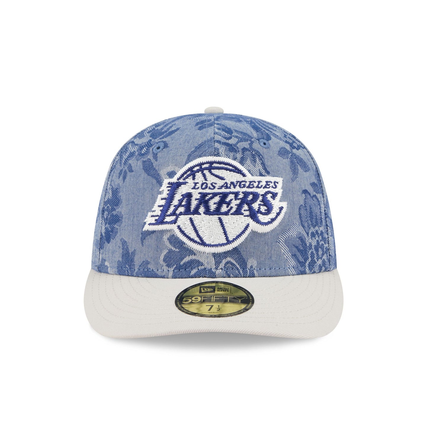 The Los Angeles Lakers Two-Tone Denim 59FIFTY Fitted Cap features an embroidered Lakers logo at the front panels against a specialty Japanese milled gobline chambray fabrication from Three Looms Japan Fabrics throughout the cap. Additional details include an NBA Logoman at the rear and a gray undervisor.