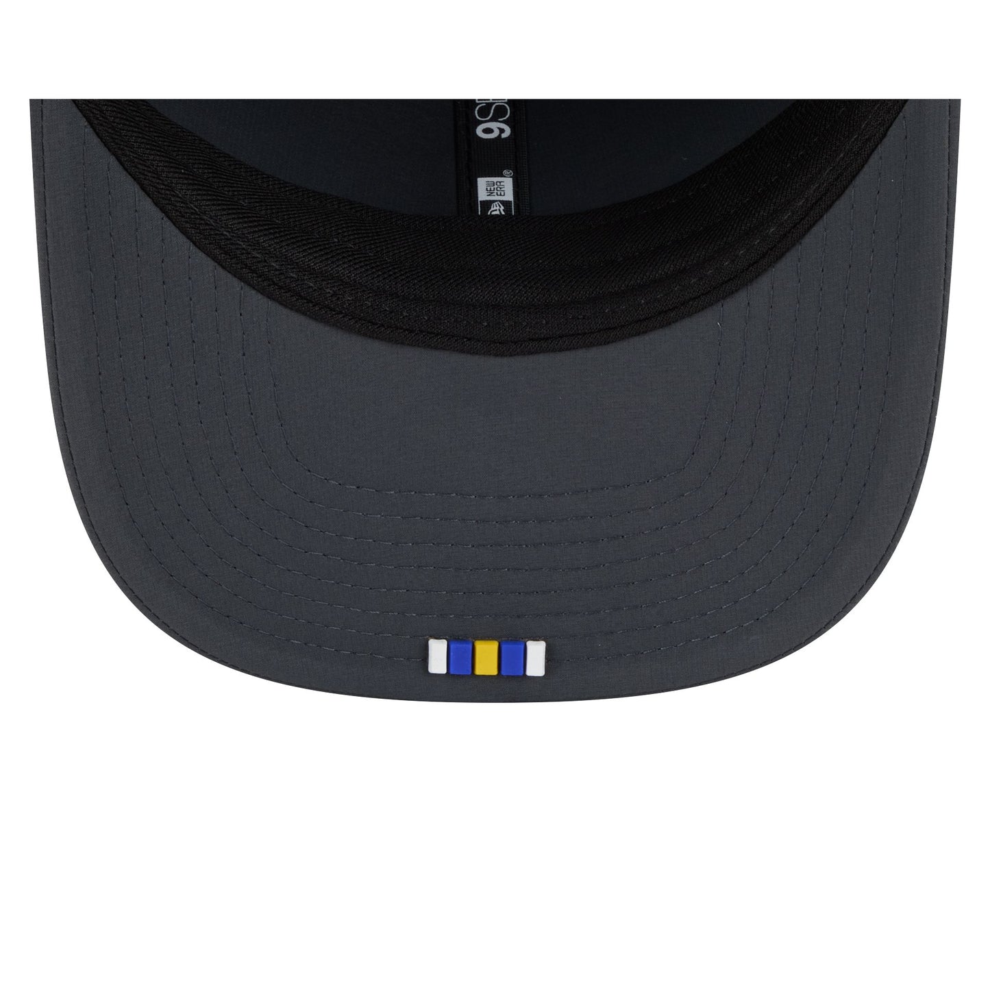 The Los Angeles Rams 2025 Sideline Cold Weather Steel Clouds 9SEVENTY Stretch-Snap features a sewn-down silicone Rams logo patch at the front panels with a water-repellent quill tech fabrication throughout and an insulated crown with a quick-dry cushioned sweatband. Additional details include the Official NFL Shield logo to the right of a soft silicone snapback closure at the rear. The undervisor is accented with a silicone transfer in the team’s colors.