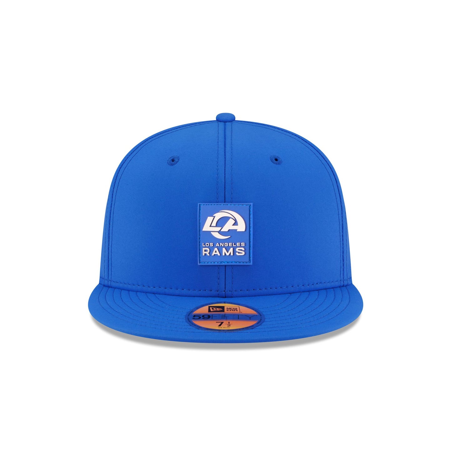 The Los Angeles Rams 2025 Sideline Hot Weather 59FIFTY Fitted Cap features a sewn-down silicone Rams logo patch at the front panels with the Official NFL Shield logo at the rear. The cap has a water-repellent quill tech fabrication throughout, with a quick-dry cushioned sweatband to absorb moisture. The undervisor is accented with a silicone transfer in the team’s colors.