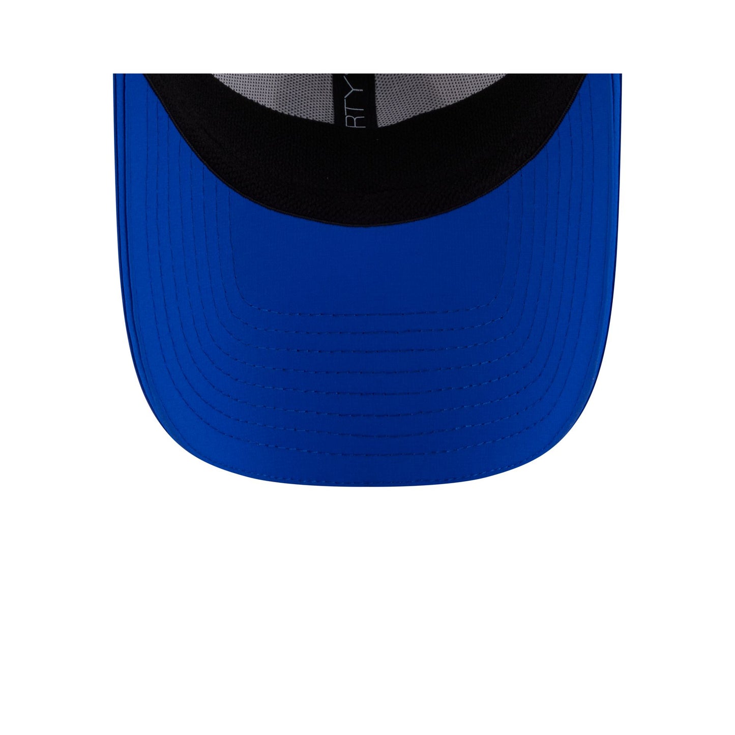 The Los Angeles Rams 2025 Training 39THIRTY Stretch Fit Cap features a silicone Rams patch at the front panels with team color stripes at the front of a blue visor and a silicone NFL Shield patch at the rear.
