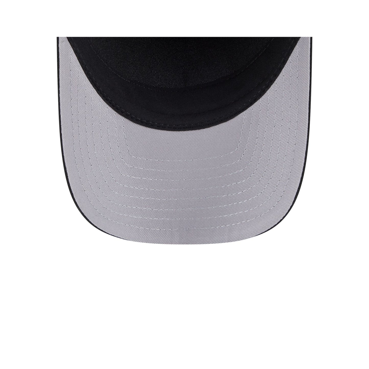 The Los Angeles Rams Black & White 9FORTY M-Crown A-Frame Snapback features an embroidered Rams logo at the front panels with an adjustable snapback closure at the rear and a gray undervisor.