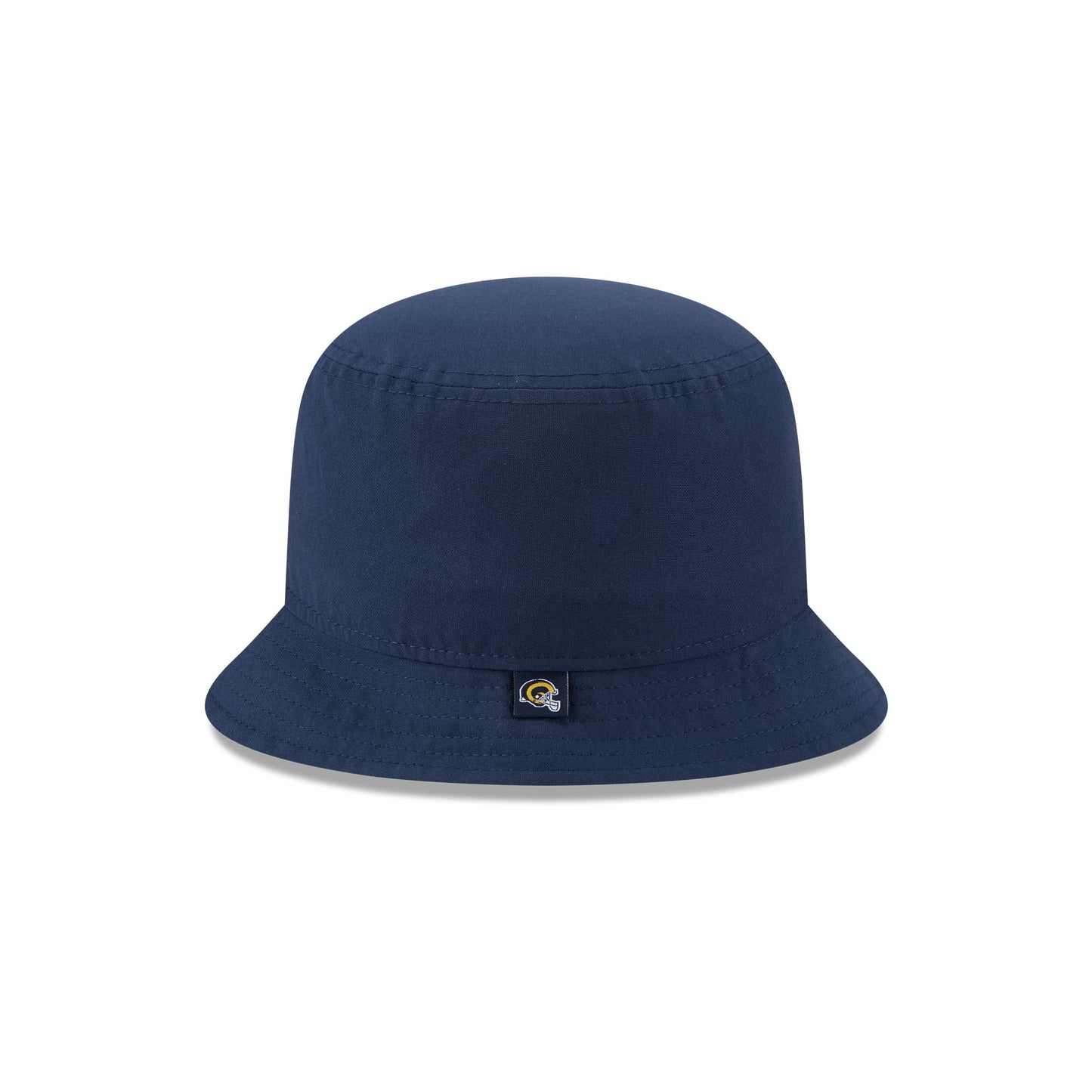 The Los Angeles Rams Historic Helmet Bucket Hat features an embroidered Rams helmet design throughout.