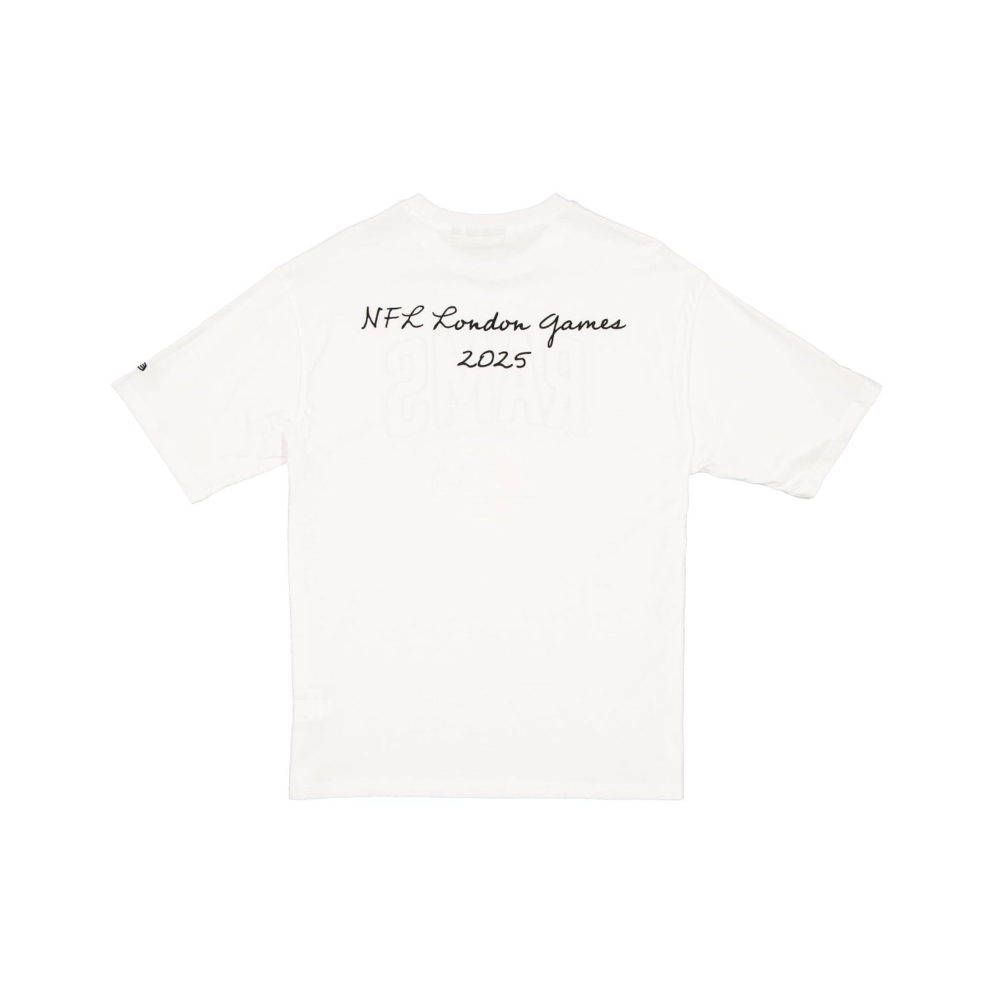 The Los Angeles Rams International Games Wordmark T-Shirt features an embroidered Rams graphic at the front.