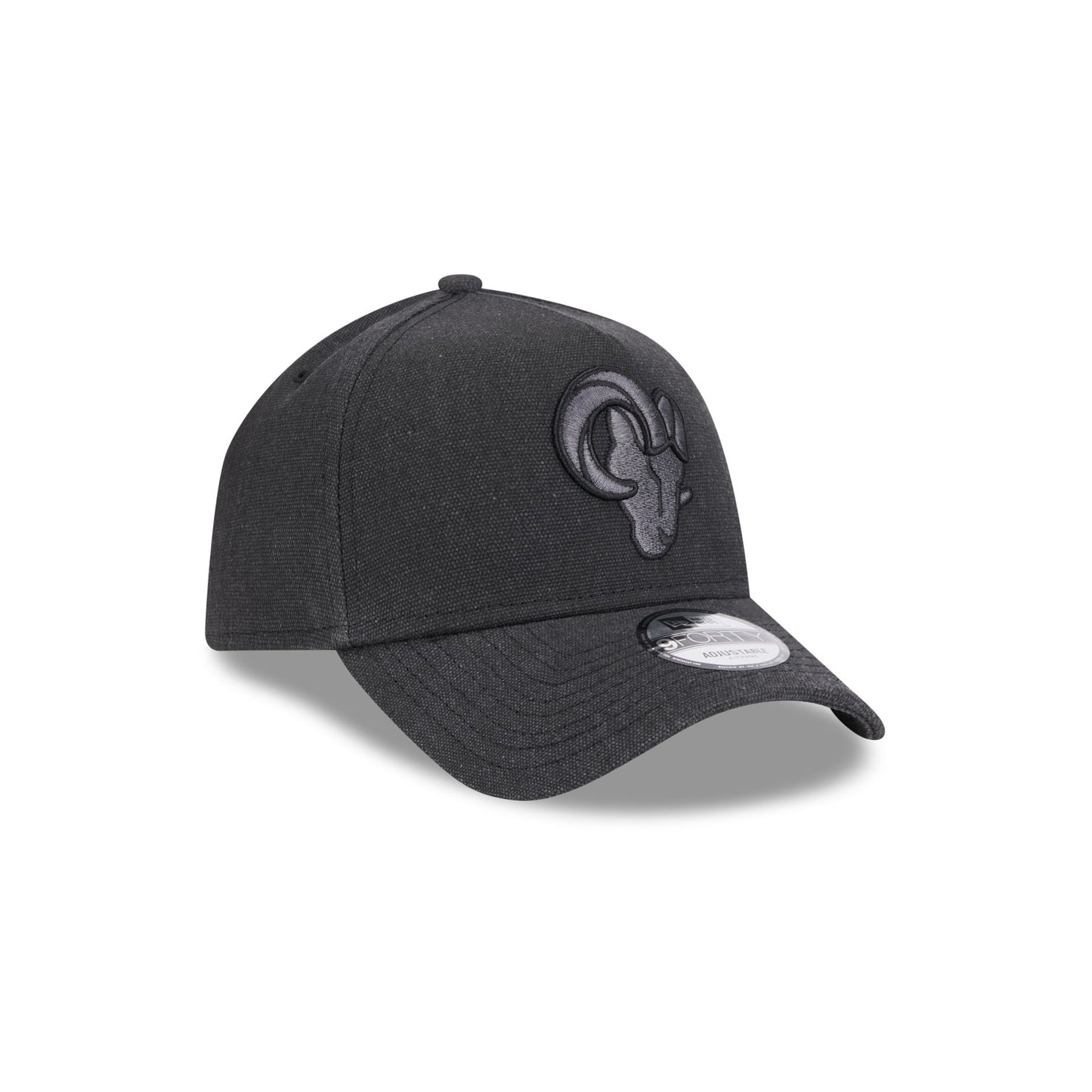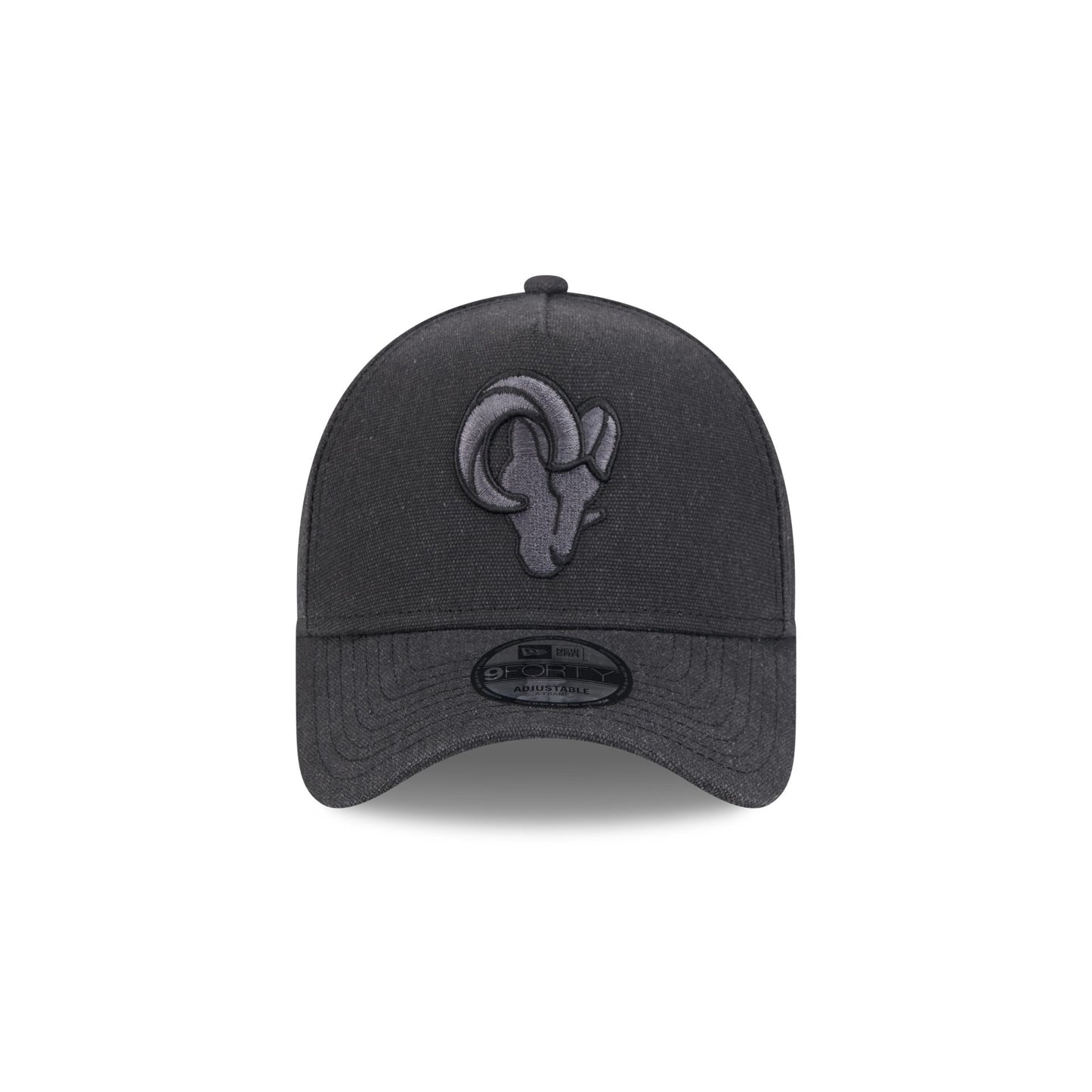 The Los Angeles Rams Logo Essentials Black 9FORTY A-Frame Snapback features an embroidered Rams logo at the front panels with a snapback closure at the rear.