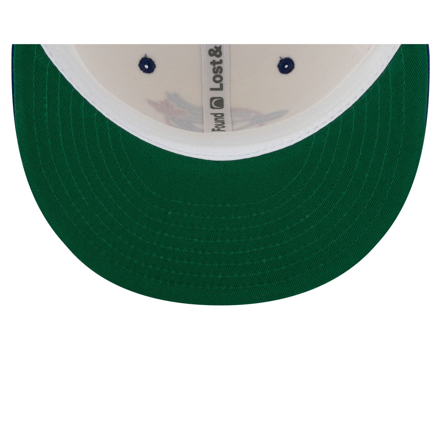 The Lost & Found x Toronto Blue Jays White 59FIFTY Fitted Cap features an embroidered Blue Jays Cooperstown logo at the front panels with a Lost & Found wordmark at the rear and a green undervisor.