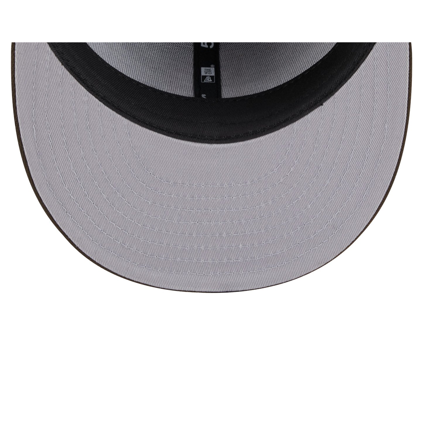 The Love From San Diego Padres 59FIFTY Fitted Cap features an embroidered Padres logo at the front panels with a matching MLB Batterman logo at the rear. Additional details include a team Valentine patch at the right-wear side and a gray undervisor.